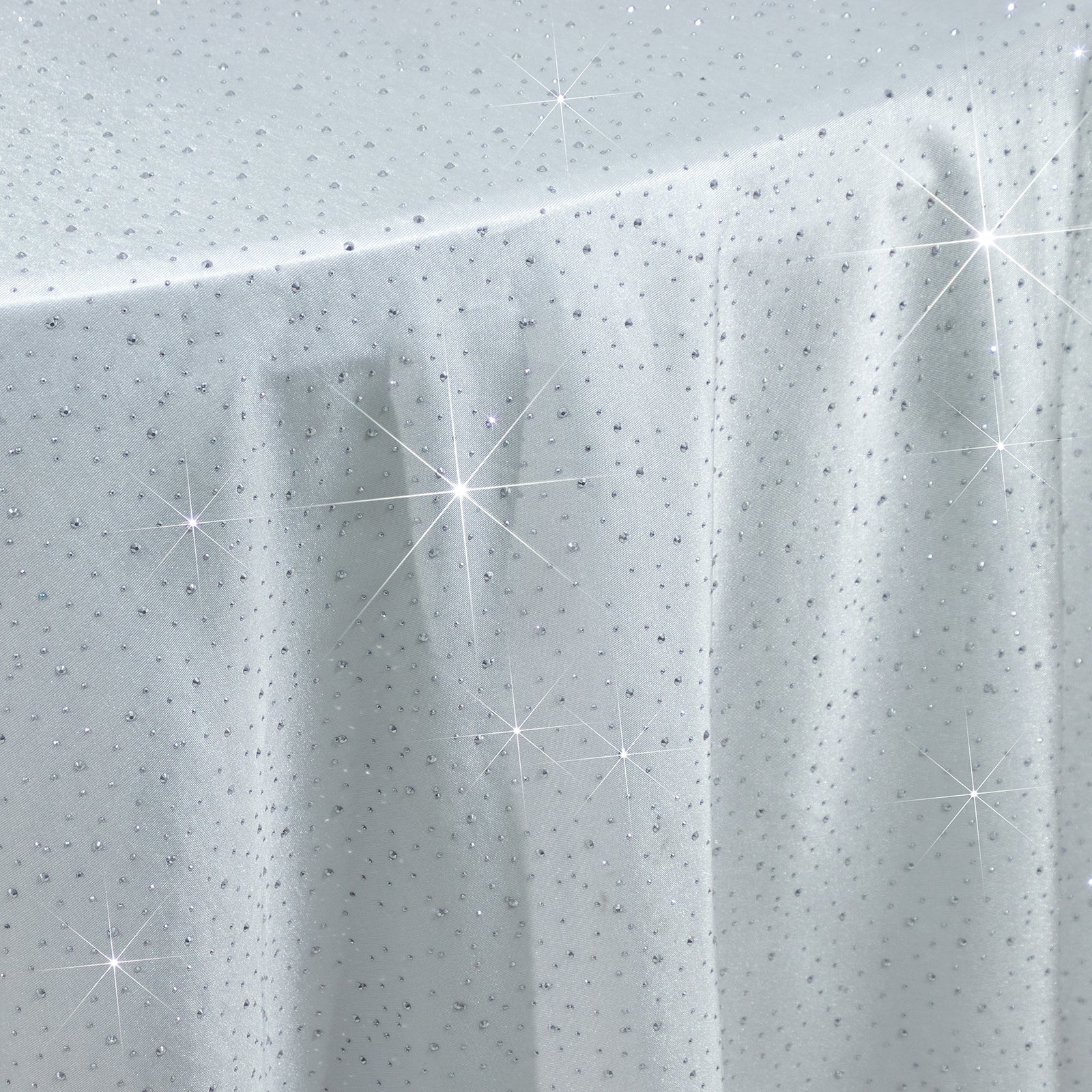 Scuba Round Tablecloth 120″ White with Rhinestone Accents – Seamless, Wrinkle-Free, Stain-Resistant Event Linen