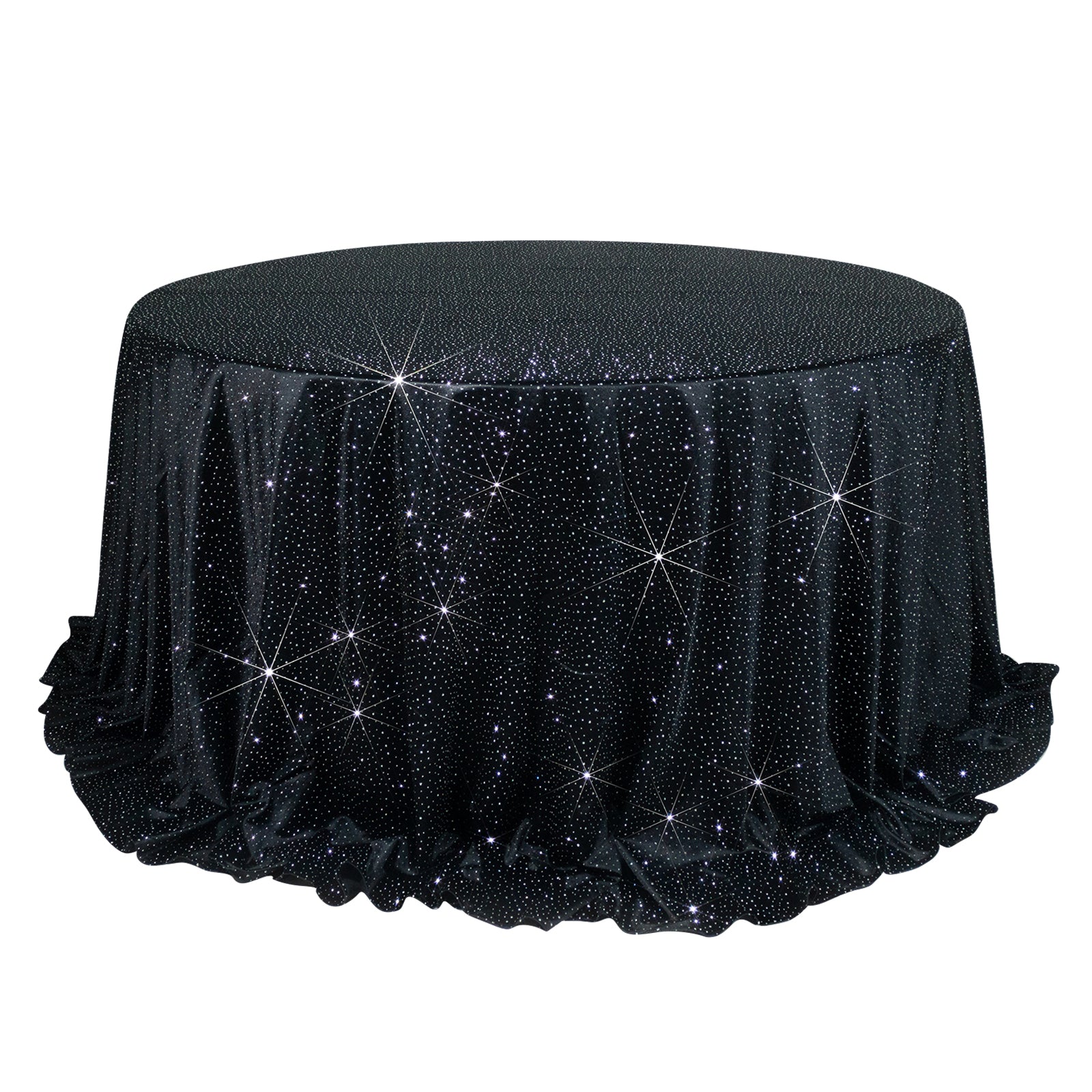 Scuba Round Tablecloth 132″ Black with Rhinestone Accents – Seamless, Wrinkle-Free, Stain-Resistant Event Linen