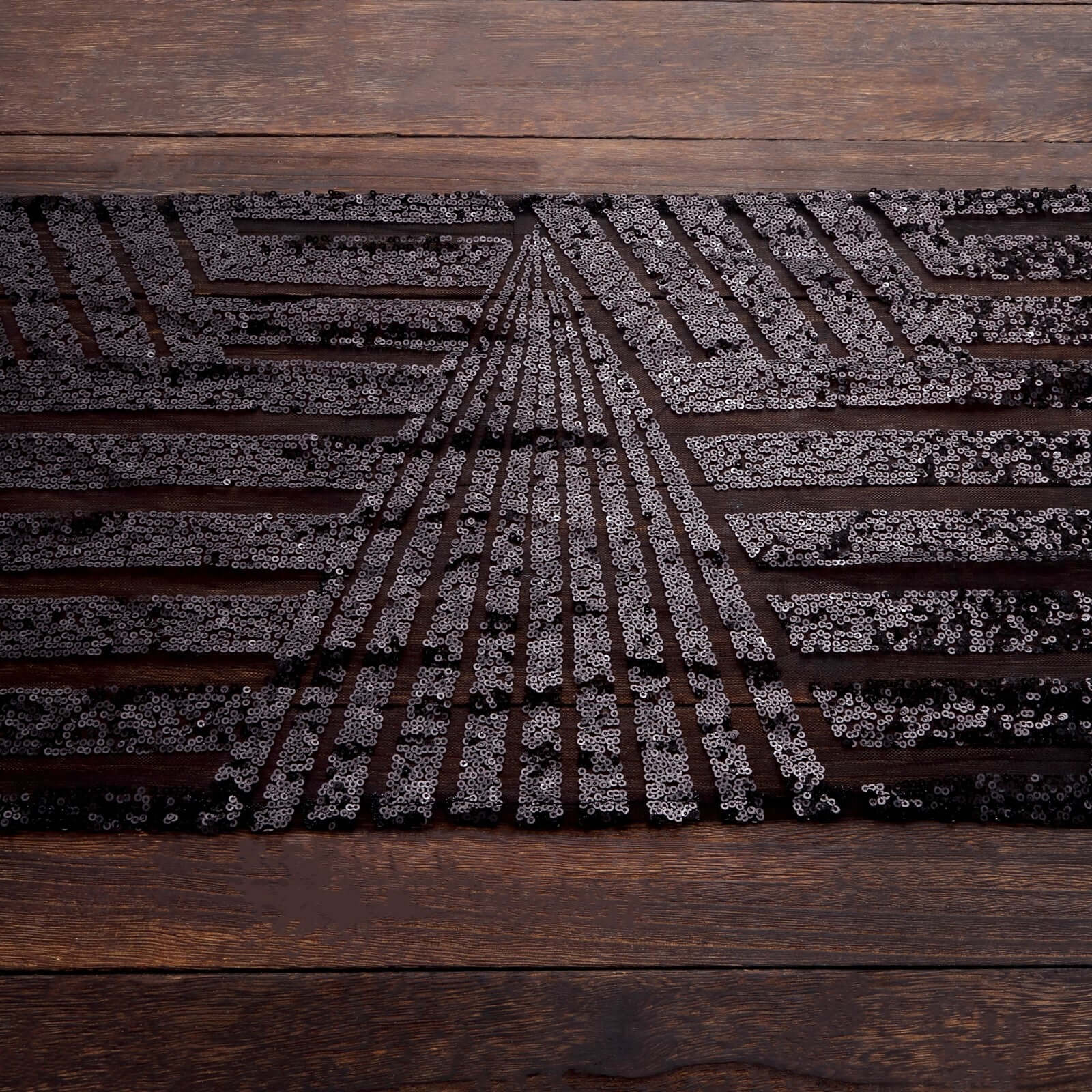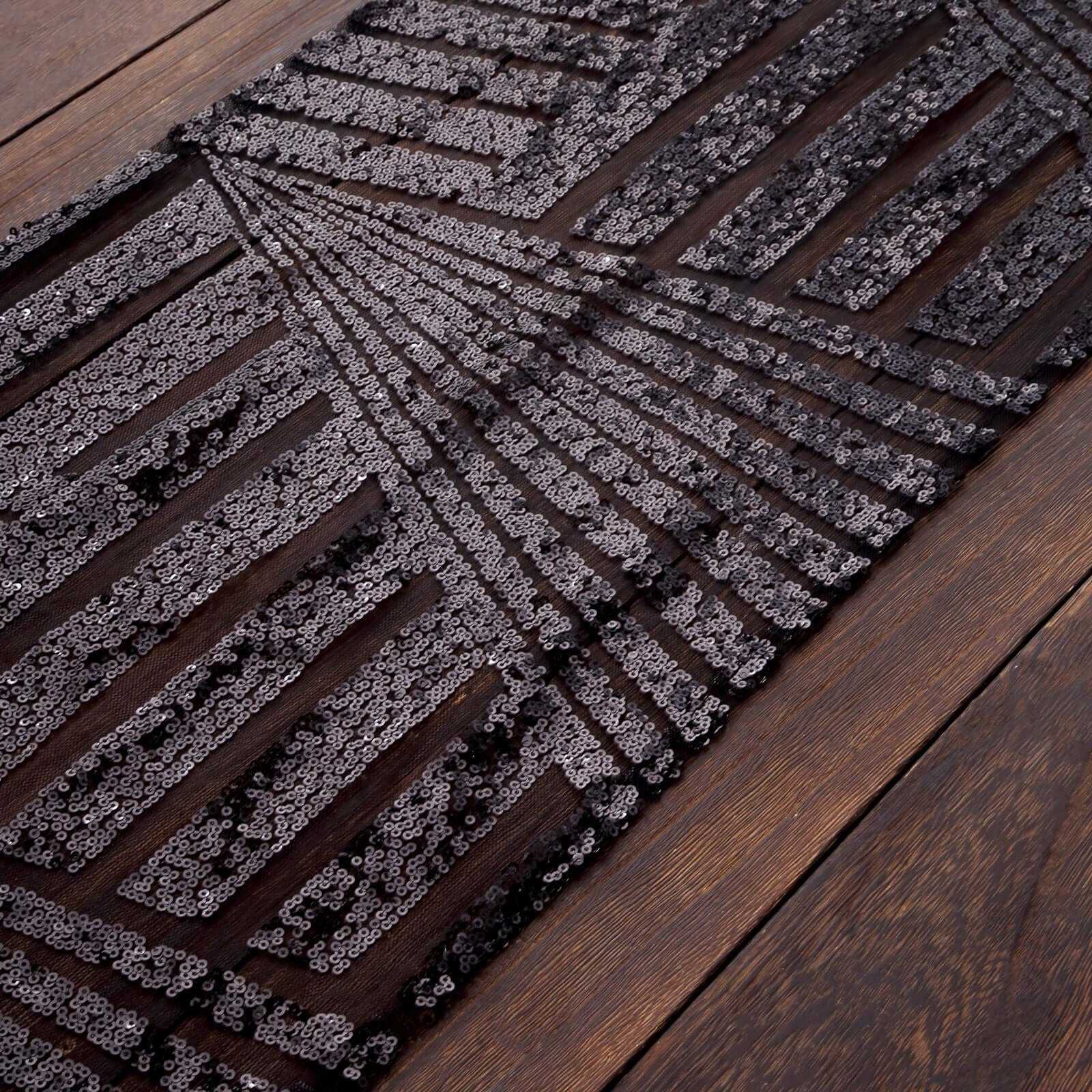 Sequin 12"x108" Table Runner Black - Diamond Glitz Design