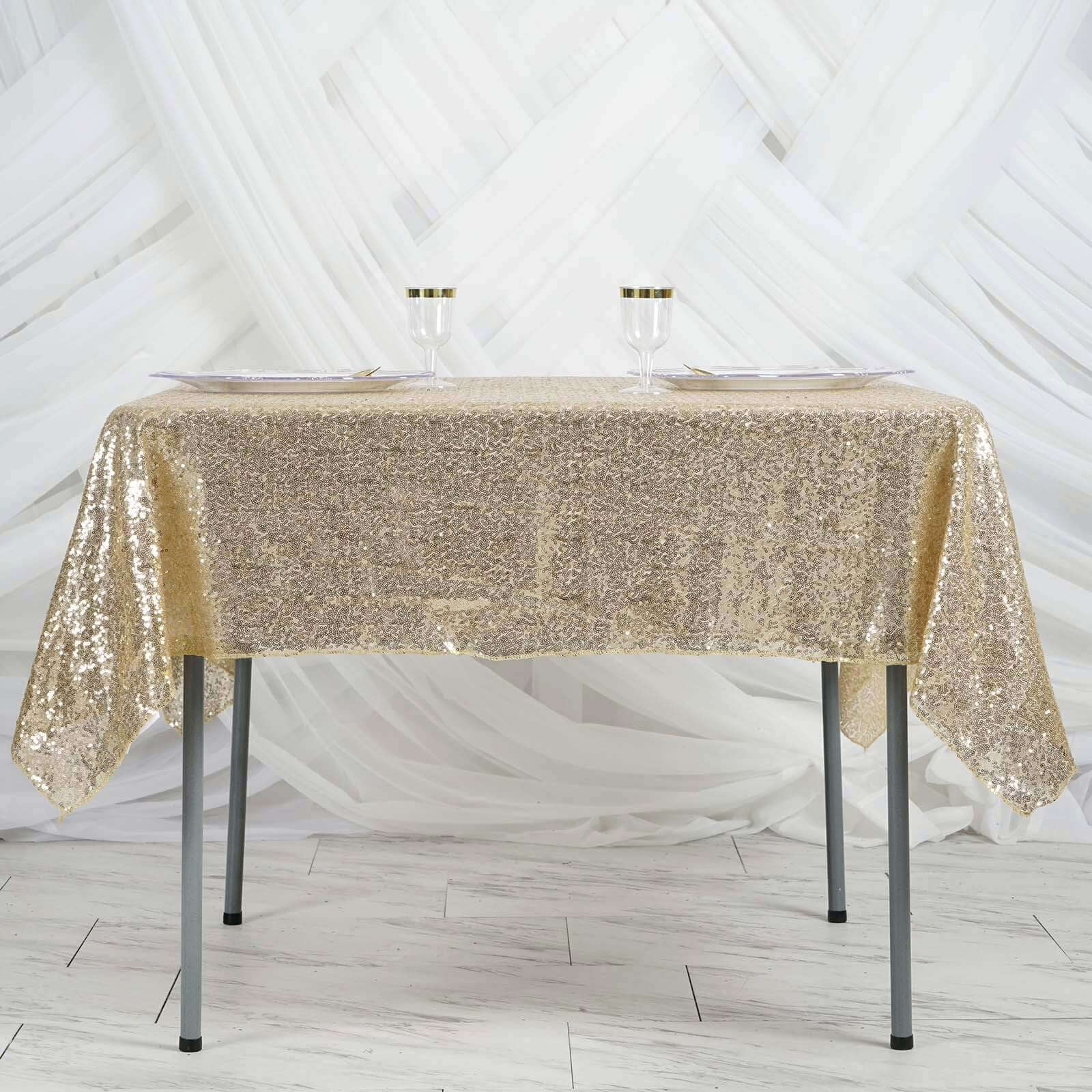 Sequin 60"x60" Table Overlay Square Tablecloth Champagne - Luxe Wedding Table Topper