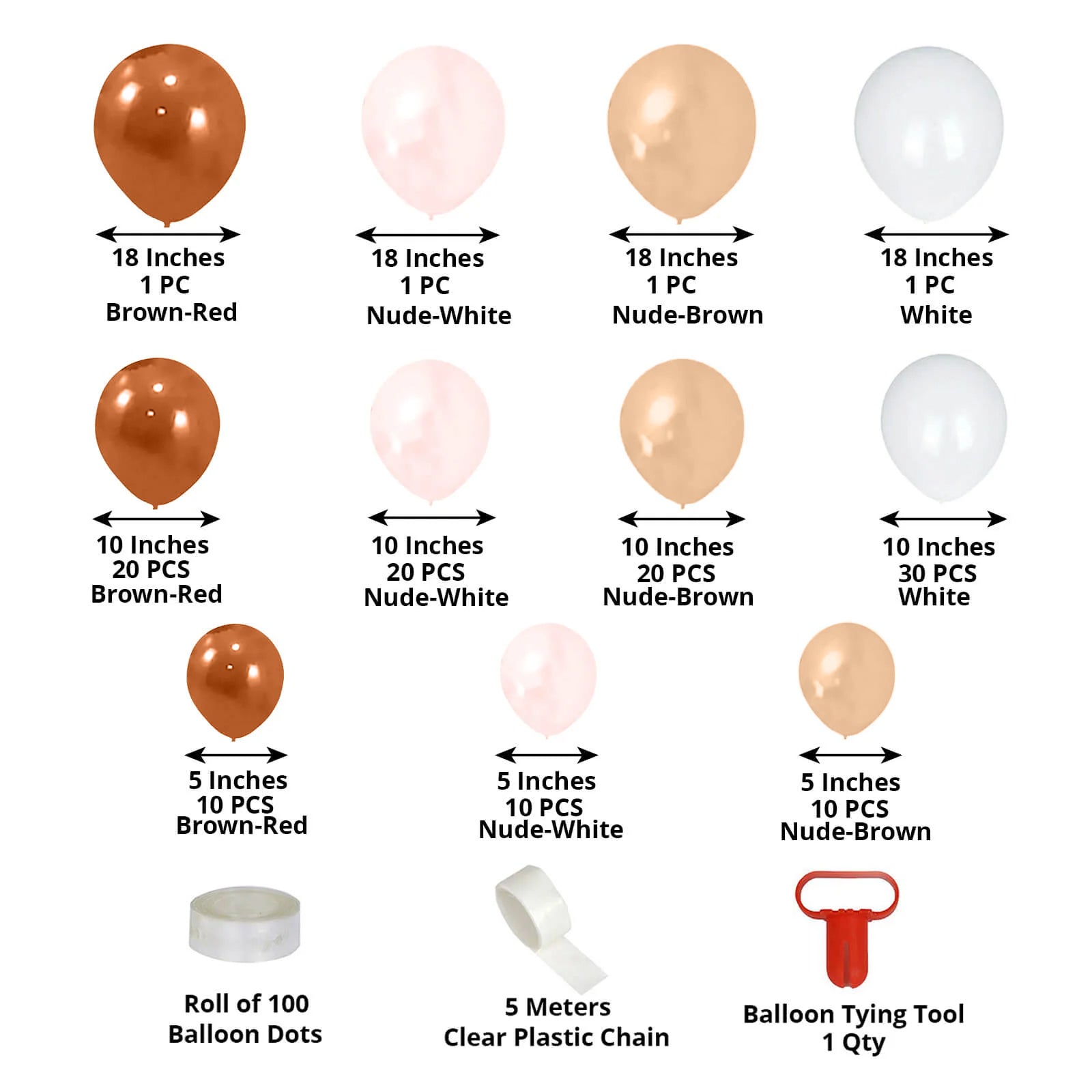 Set of 124 Tan Brown Biodegradable Balloon Arch Kit, Rustic Double Layered Extra Strong Latex Party Balloon Garland