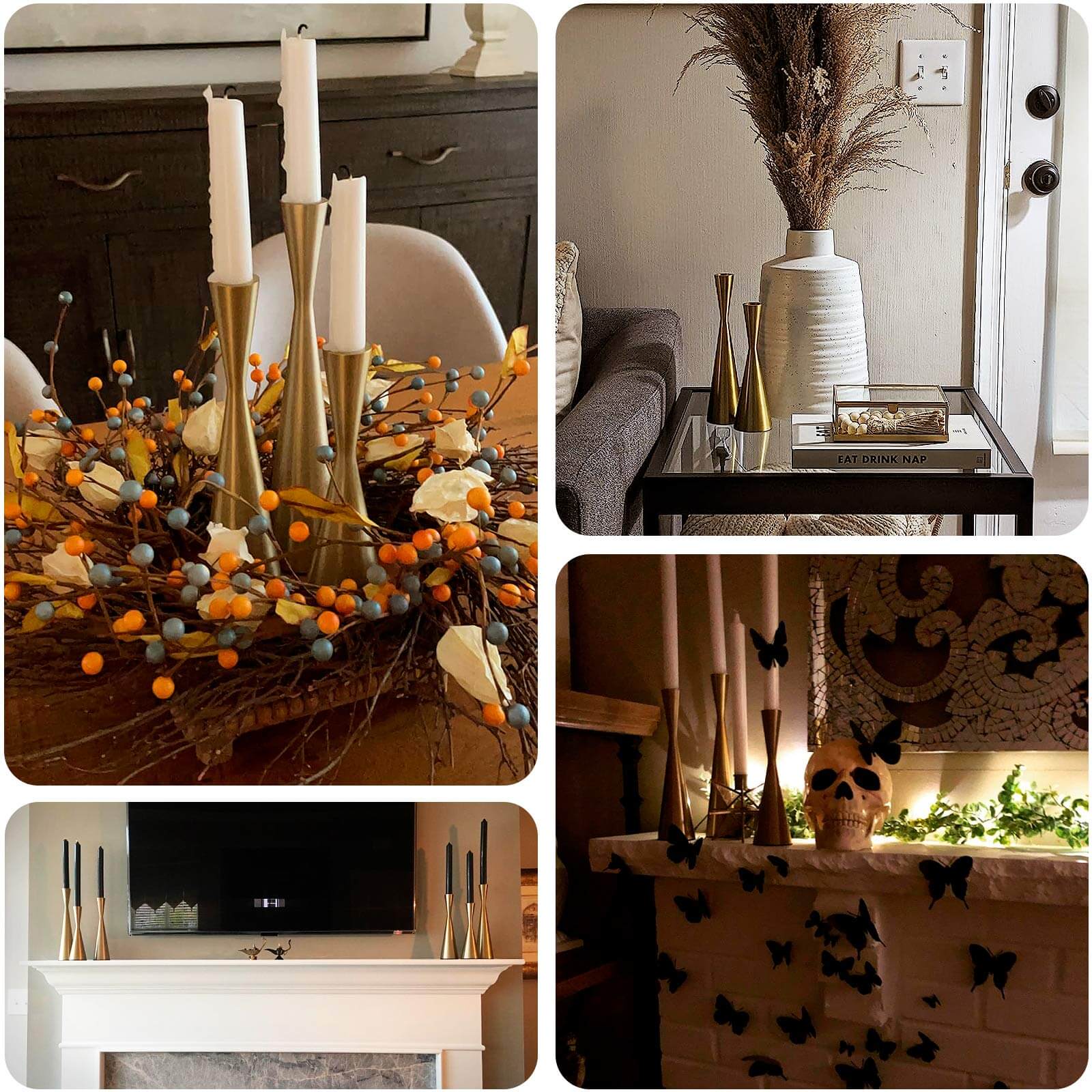Set of 3 Hourglass Taper Candle Holders Gold Metal Nordic European Design - Tabletop Decor 8", 9", 11"