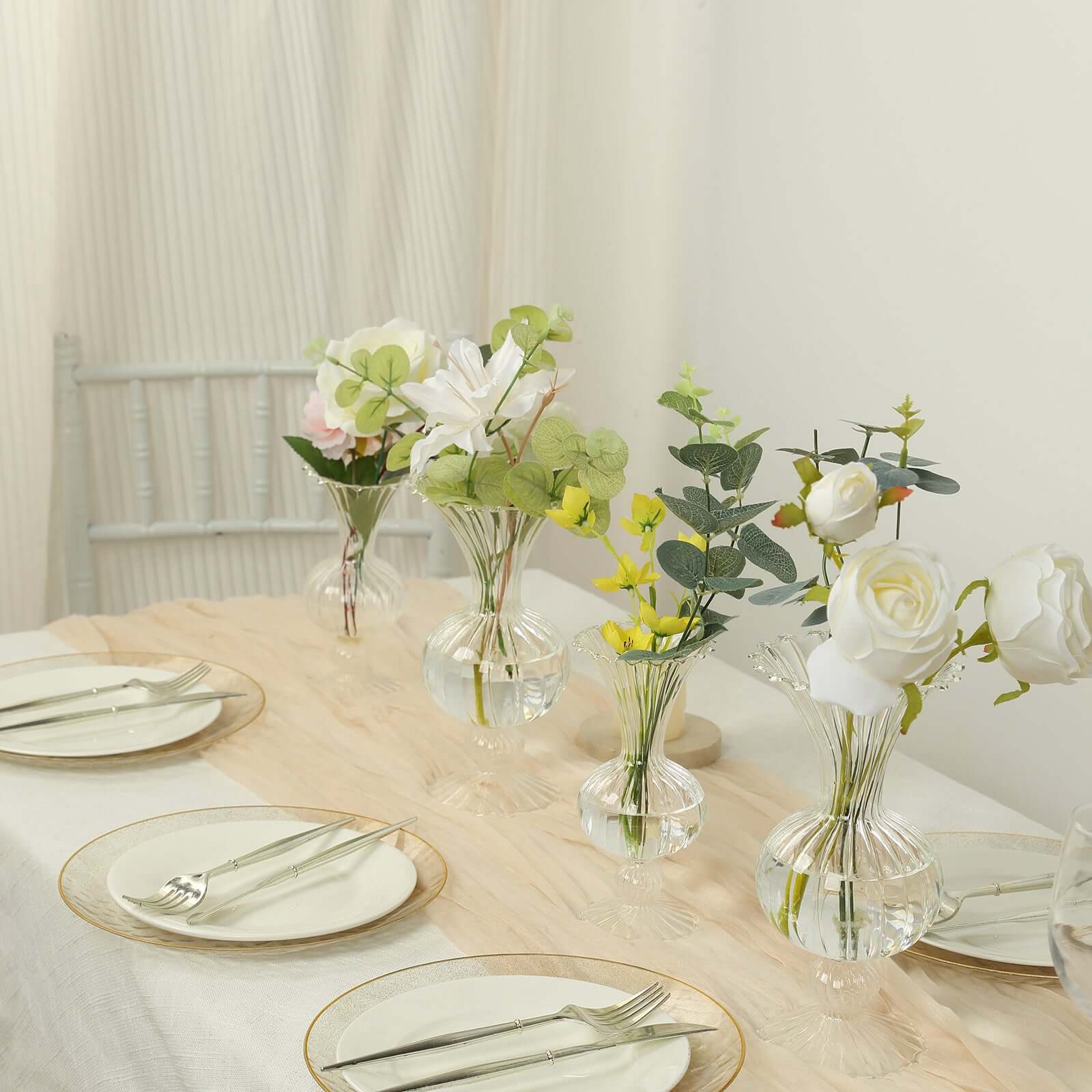 Set of 4 Glass Flower Vases Nordic Style with Petals Texture Clear - Transparent Bud Planters for Wedding Table Decor 7", 9"