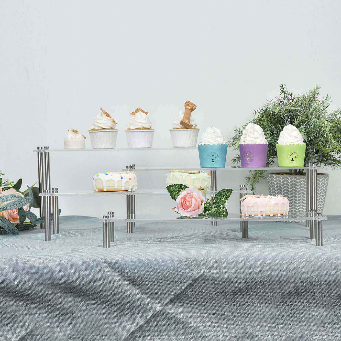 Set of 4 Premium Acrylic Dessert Display Stands Clear - Sleek Multi Level Buffet Riser Serving Tray Platter for Cupcakes Pastries & Appetizers