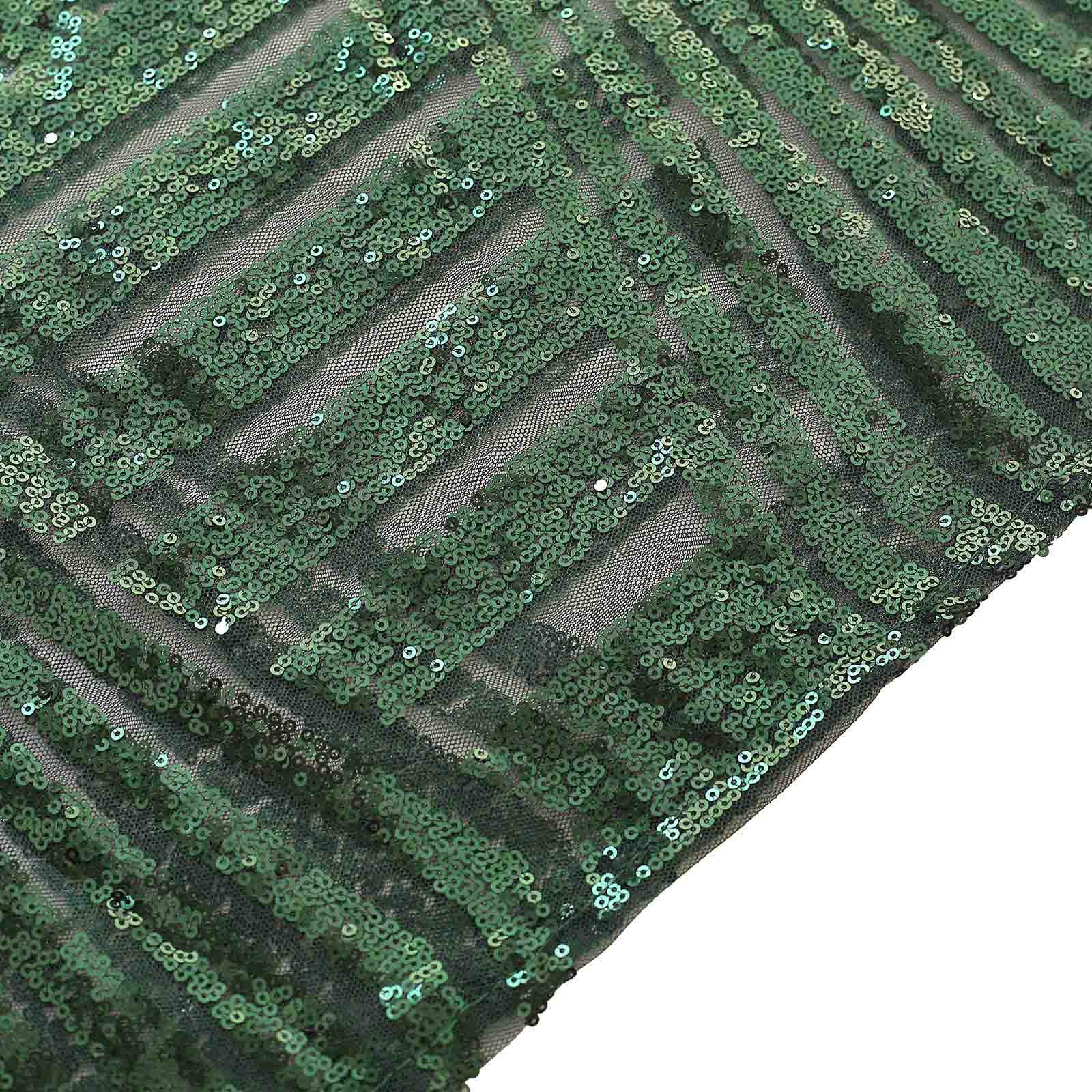 Set of 5 Hunter Emerald Green Sequin Mesh Cylinder Pedestal Stand Covers with Geometric Pattern Embroidery, Sparkly Sheer Tulle Pillar Prop Covers