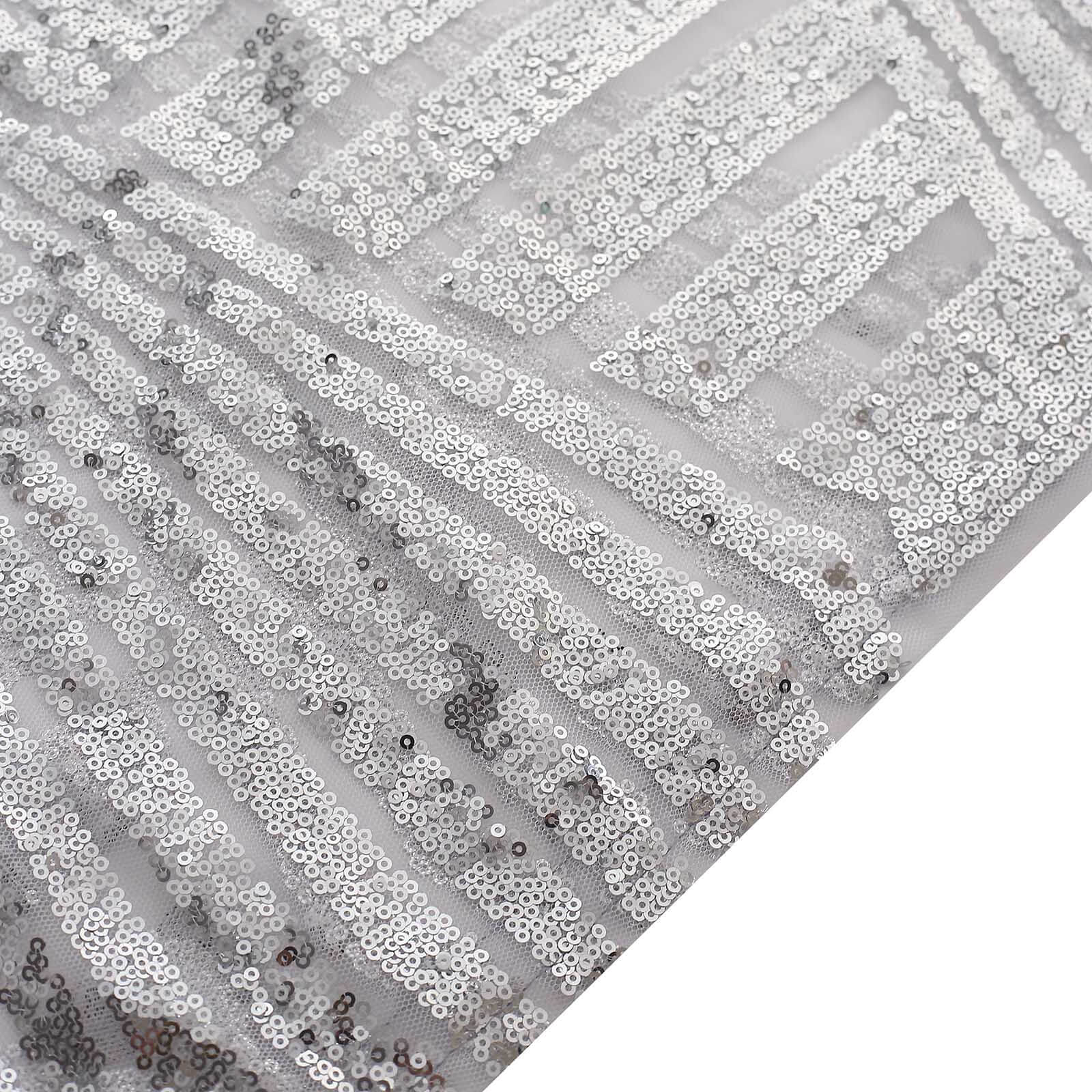 Set of 5 Silver Sequin Mesh Cylinder Pedestal Stand Covers with Geometric Pattern Embroidery, Sparkly Sheer Tulle Pillar Prop Covers