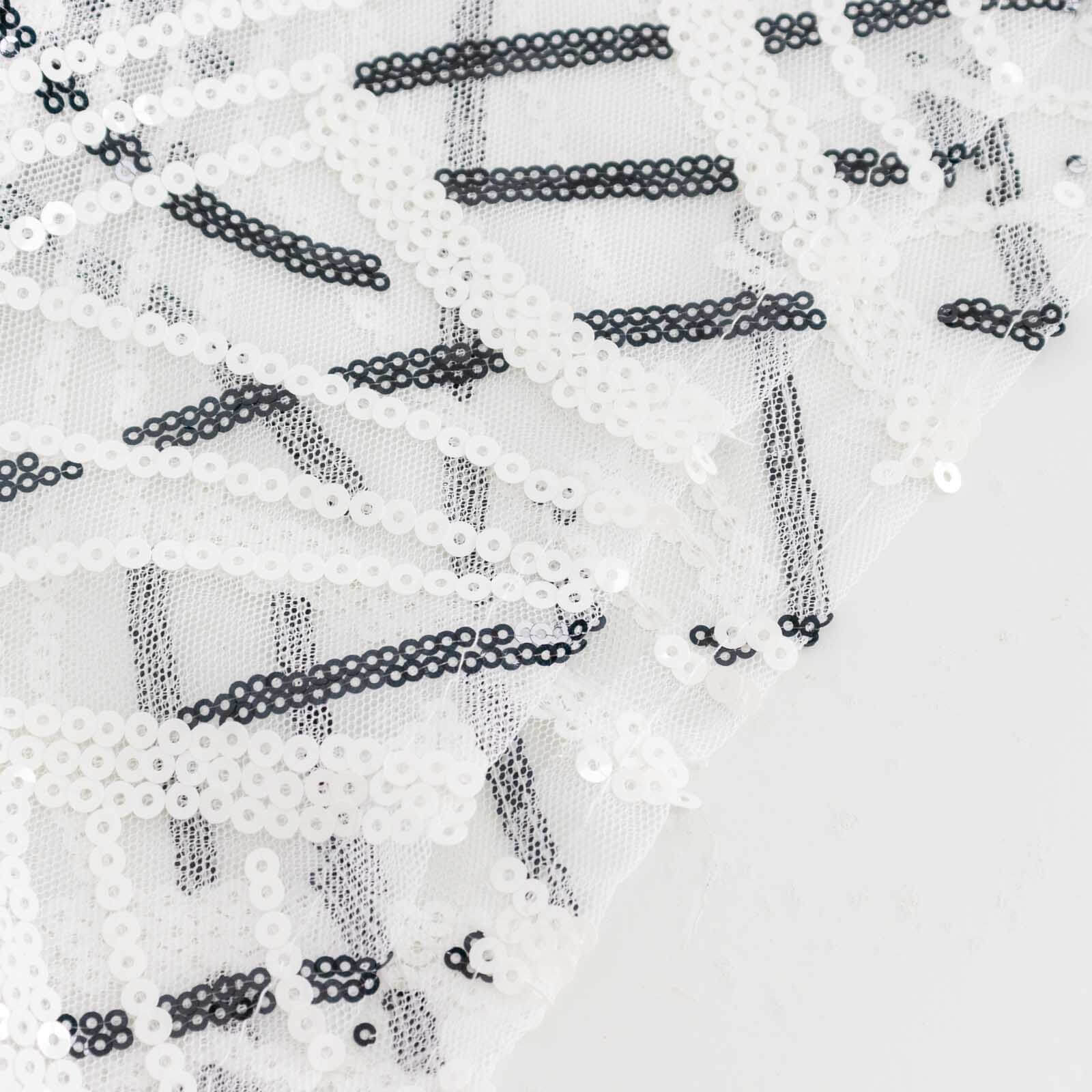 Set of 5 White Wave Mesh Cylinder Pedestal Stand Covers with Embroidered Sequins, Pillar Prop Covers - 160 GSM