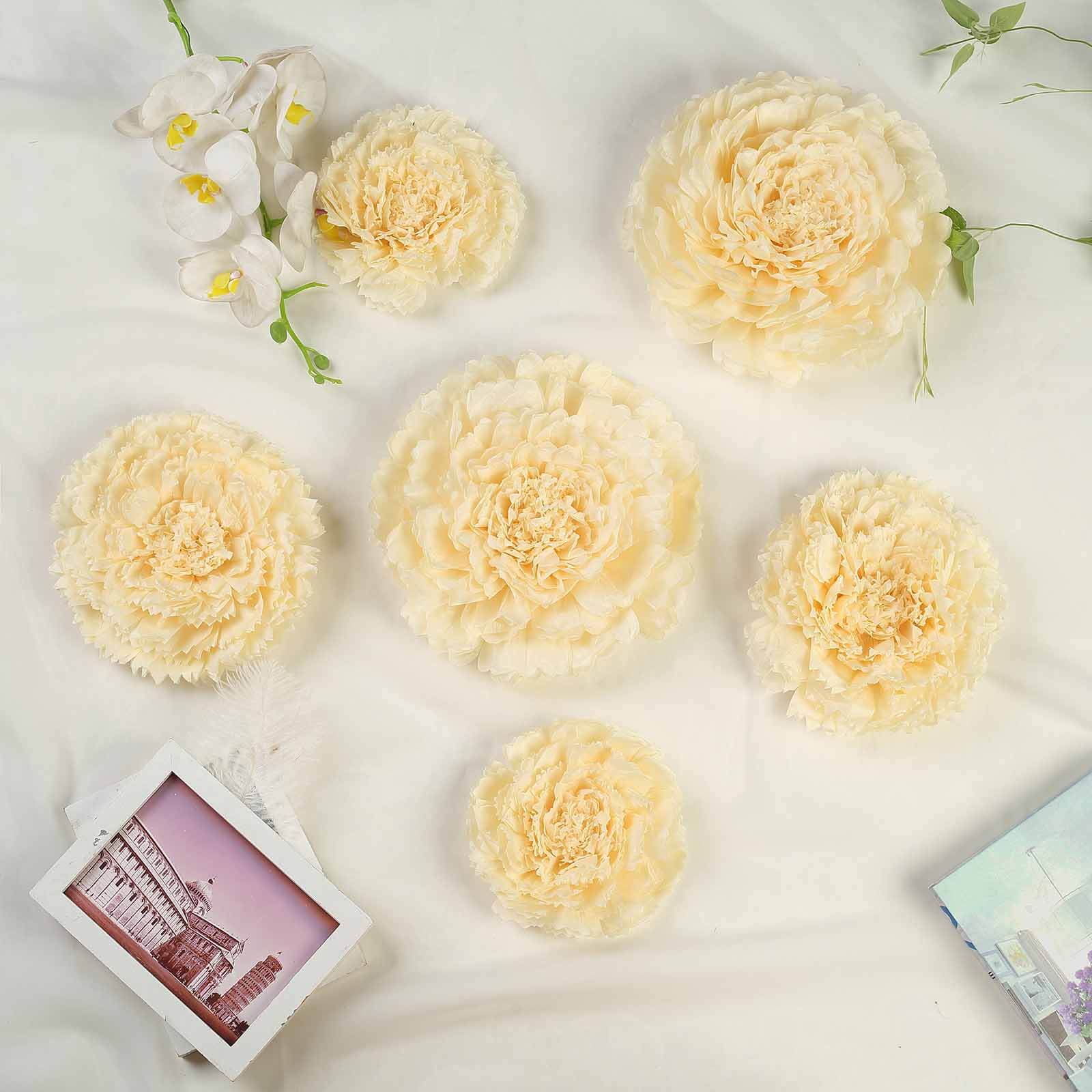Set of 6 Ivory Cream Carnation 3D Paper Flowers Wall Decor - 7",9",11"
