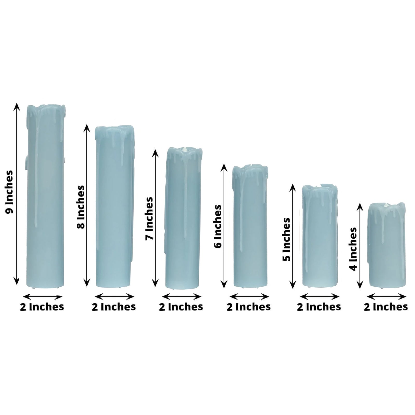 Set of 6 LED Flameless Luminaria Candles Drip Wax Dusty Blue - Battery Operated Pillar Lighting
