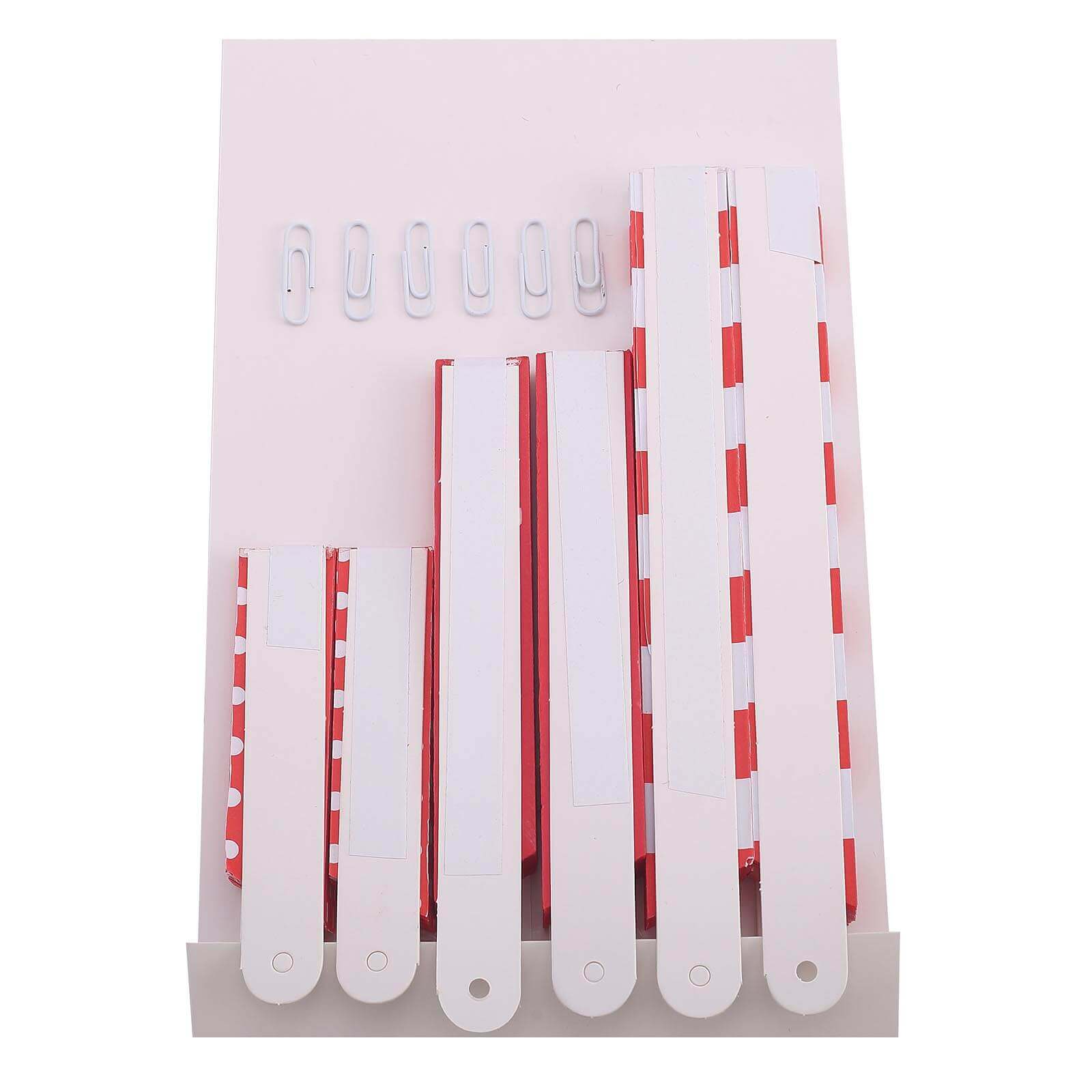 - 6x paper clips are provided to clip ends together if self-adhesive no longer works. Two ways work perfectly.