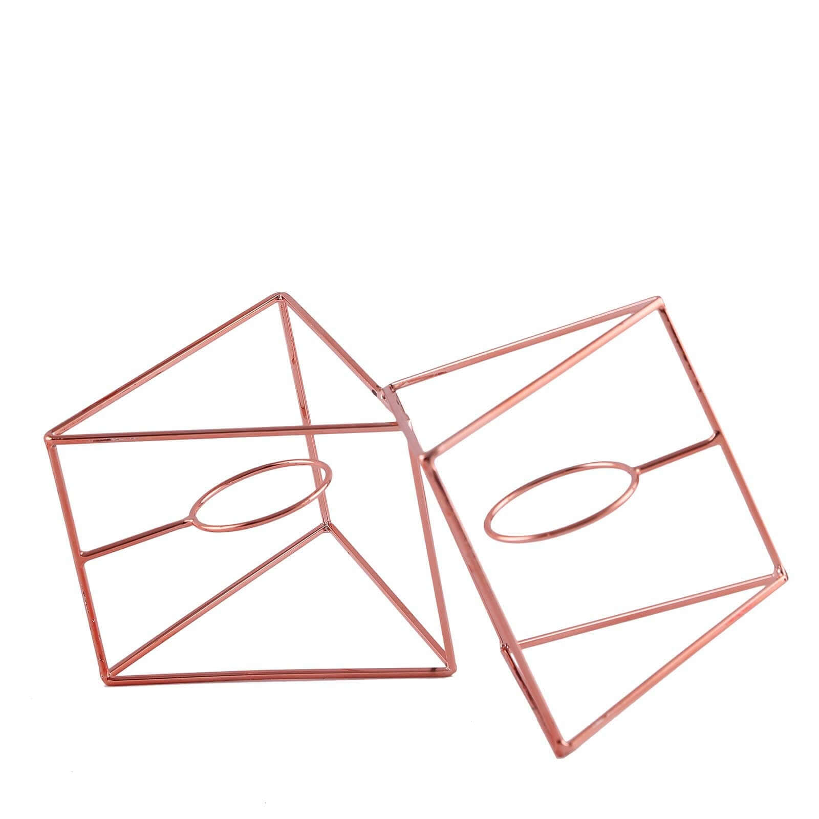 Set of Metal Candle Holders Linked Geometric Design Rose Gold - Chic Votive Glass Decor for Events & Gatherings 9"