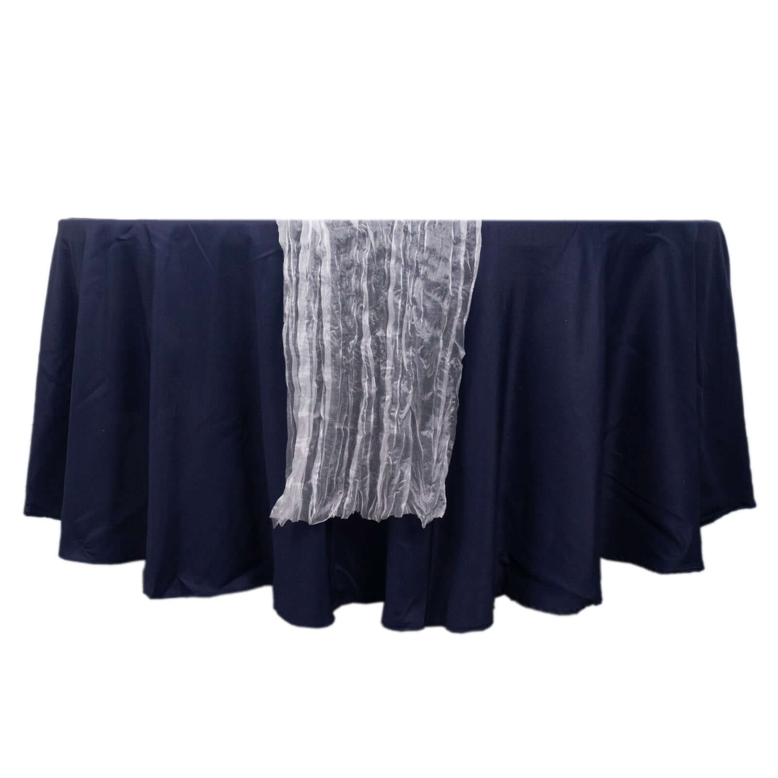 Sheer Crinkled Organza 9ft Table Runner White - Rustic Style Shimmer Chiffon Runner