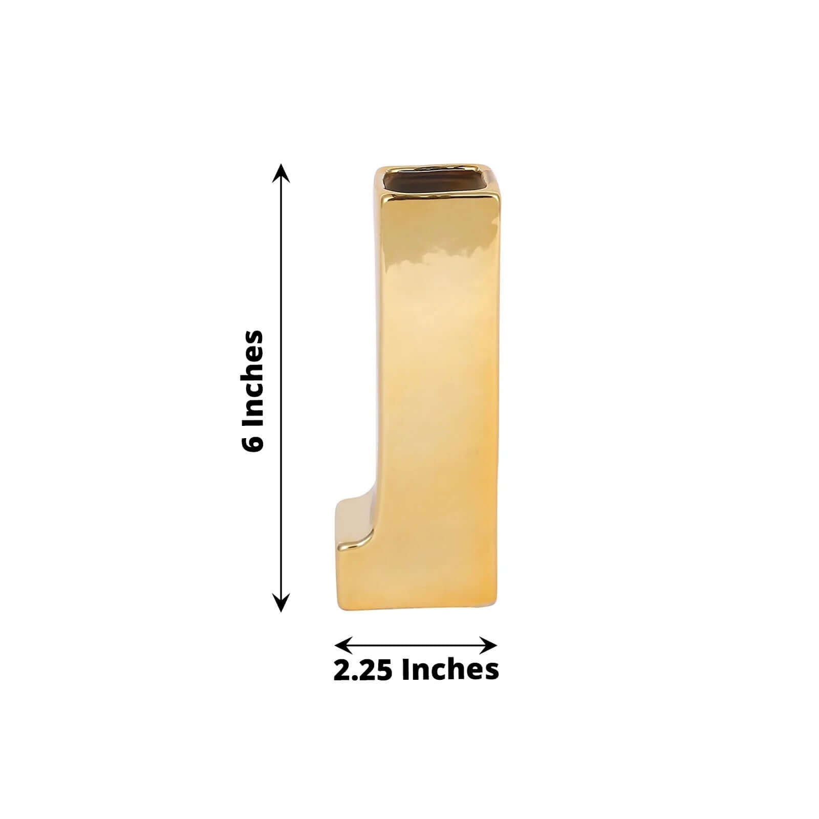 Shiny Ceramic Vase Letter "J" Gold Plated - Chic Bud Planter Pot for Events & Decor 6"
