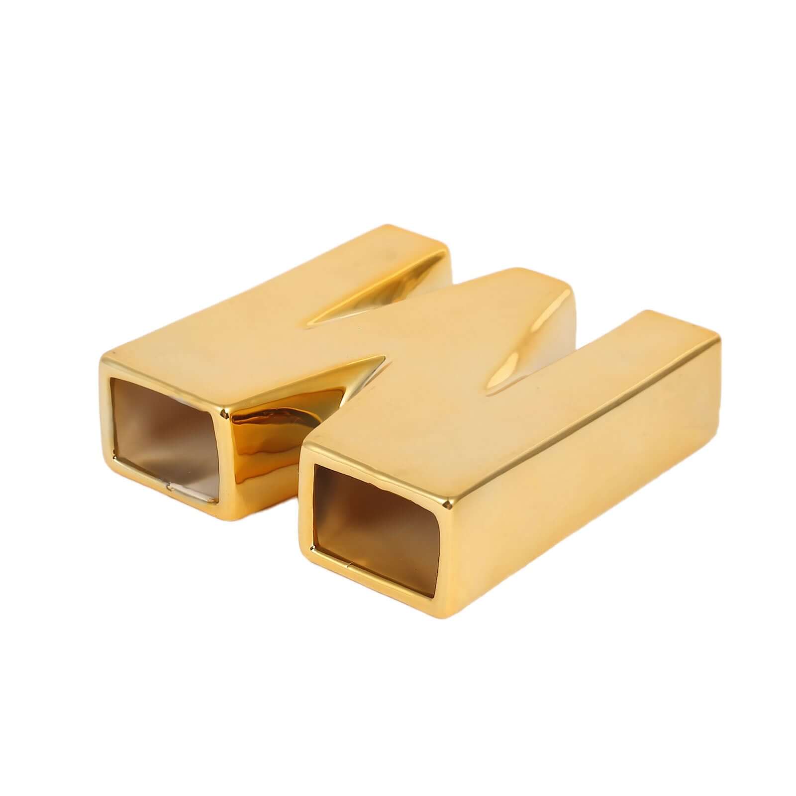 Shiny Ceramic Vase Letter "M" Gold Plated - Chic Bud Planter Pot for Events & Decor 6"