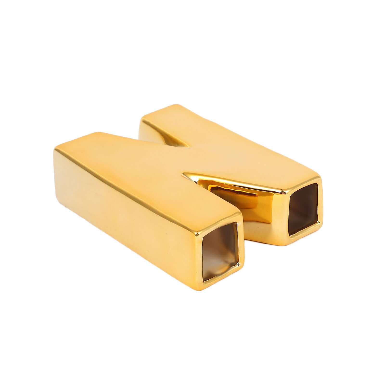 Shiny Ceramic Vase Letter "N" Gold Plated - Chic Bud Planter Pot for Events & Decor 6"
