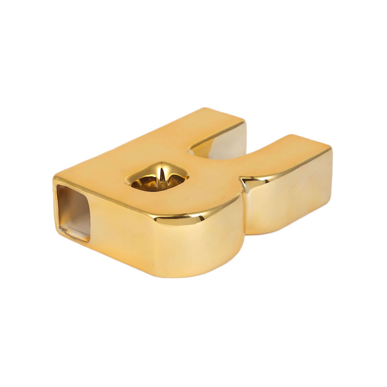 Shiny Ceramic Vase Letter "R" Gold Plated - Chic Bud Planter Pot for Events & Decor 6"