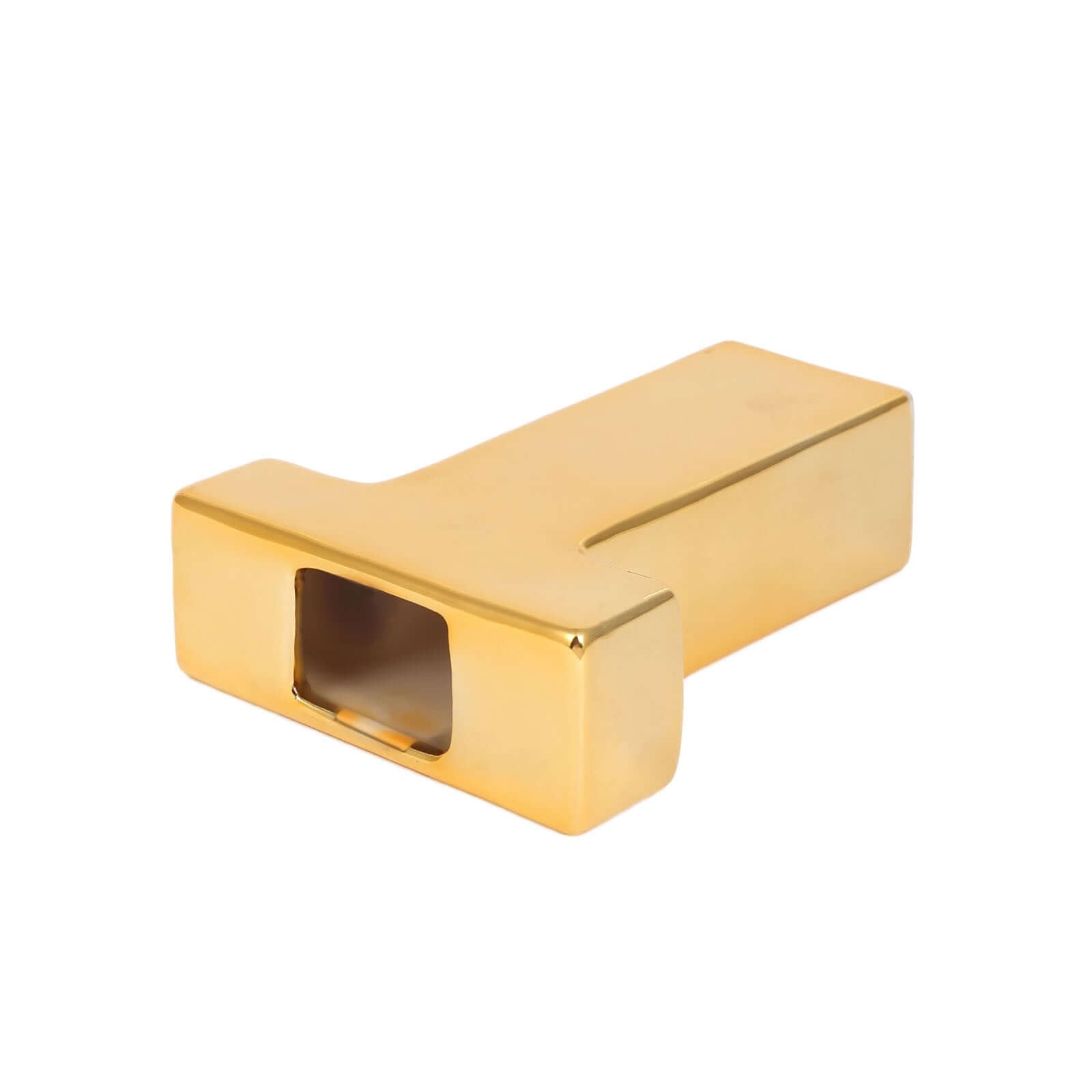 Shiny Ceramic Vase Letter "T" Gold Plated - Chic Bud Planter Pot for Events & Decor 6"