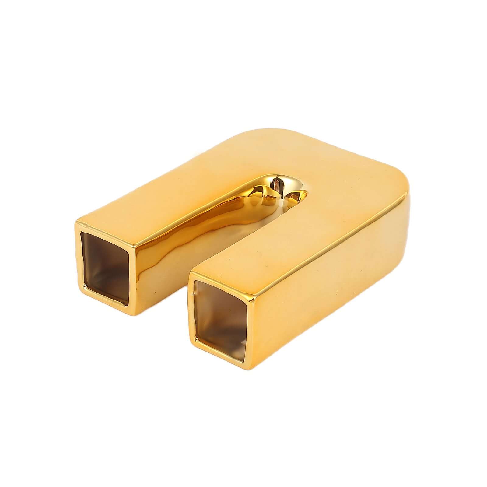 Shiny Ceramic Vase Letter "U" Gold Plated - Chic Bud Planter Pot for Events & Decor 6"