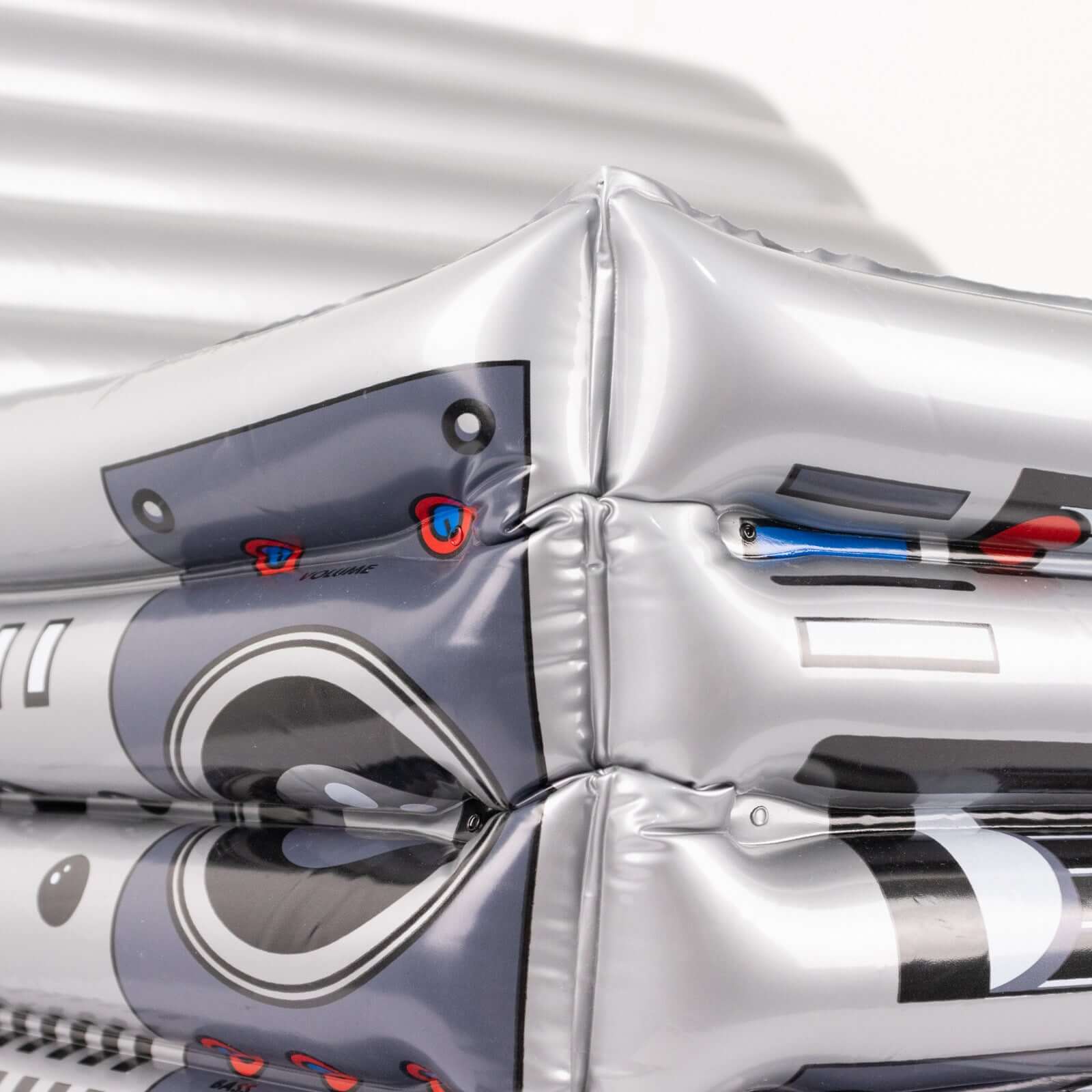 Silver Inflatable Ice Beverage Cooler with 80's Boom Box Design - Party Drink Container for Pool Events 24"x12"