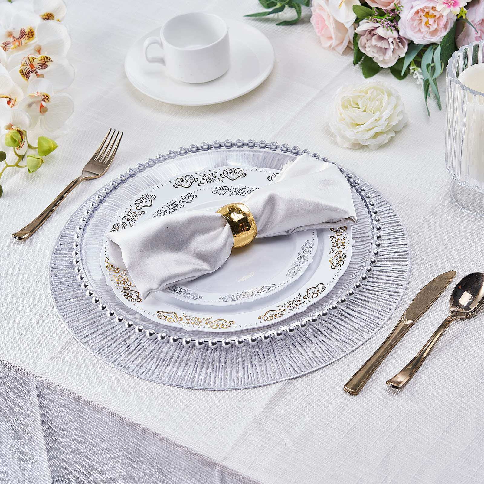 6-Pack Dining Table Mats Spiked Design Silver - Vinyl Non-Slip Surface with Modern Appeal 15"