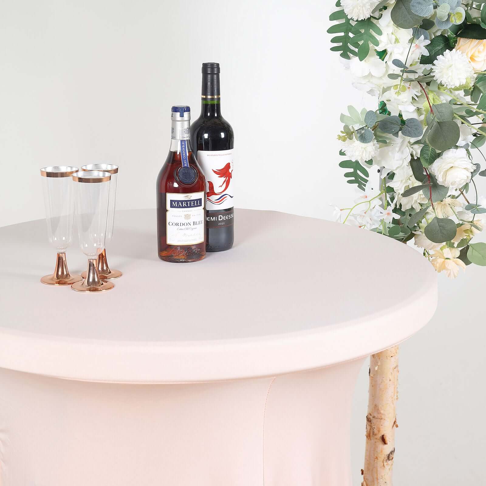 Spandex 30" Round Cocktail Table Cover Skirt Blush With Natural Wavy Drapes