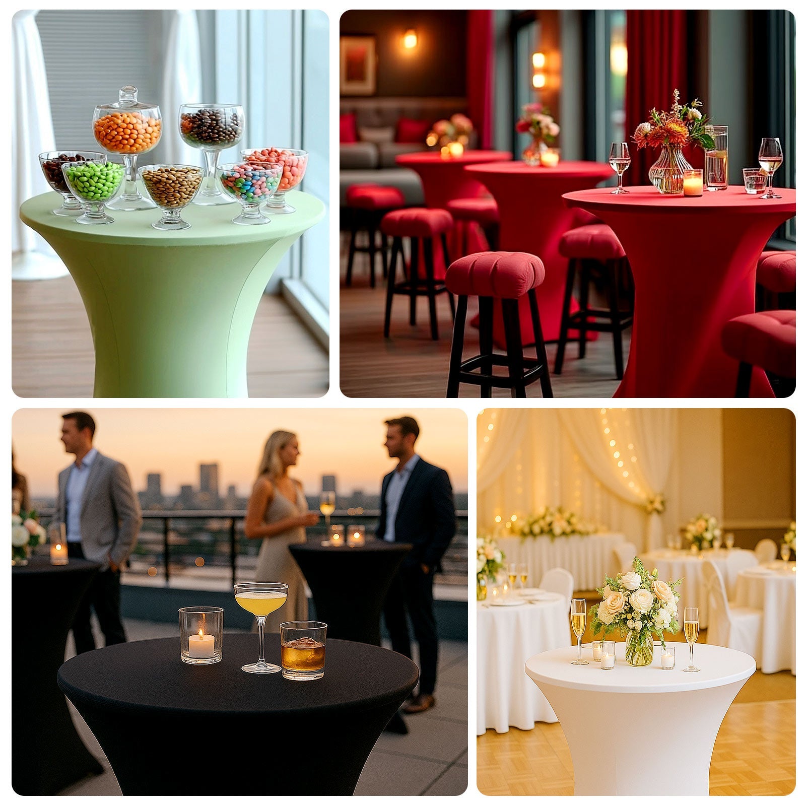 Spandex 36" Round Cocktail Table Cover Burgundy - Easy to Maintain Stretch Fitted Highboy Tablecloth