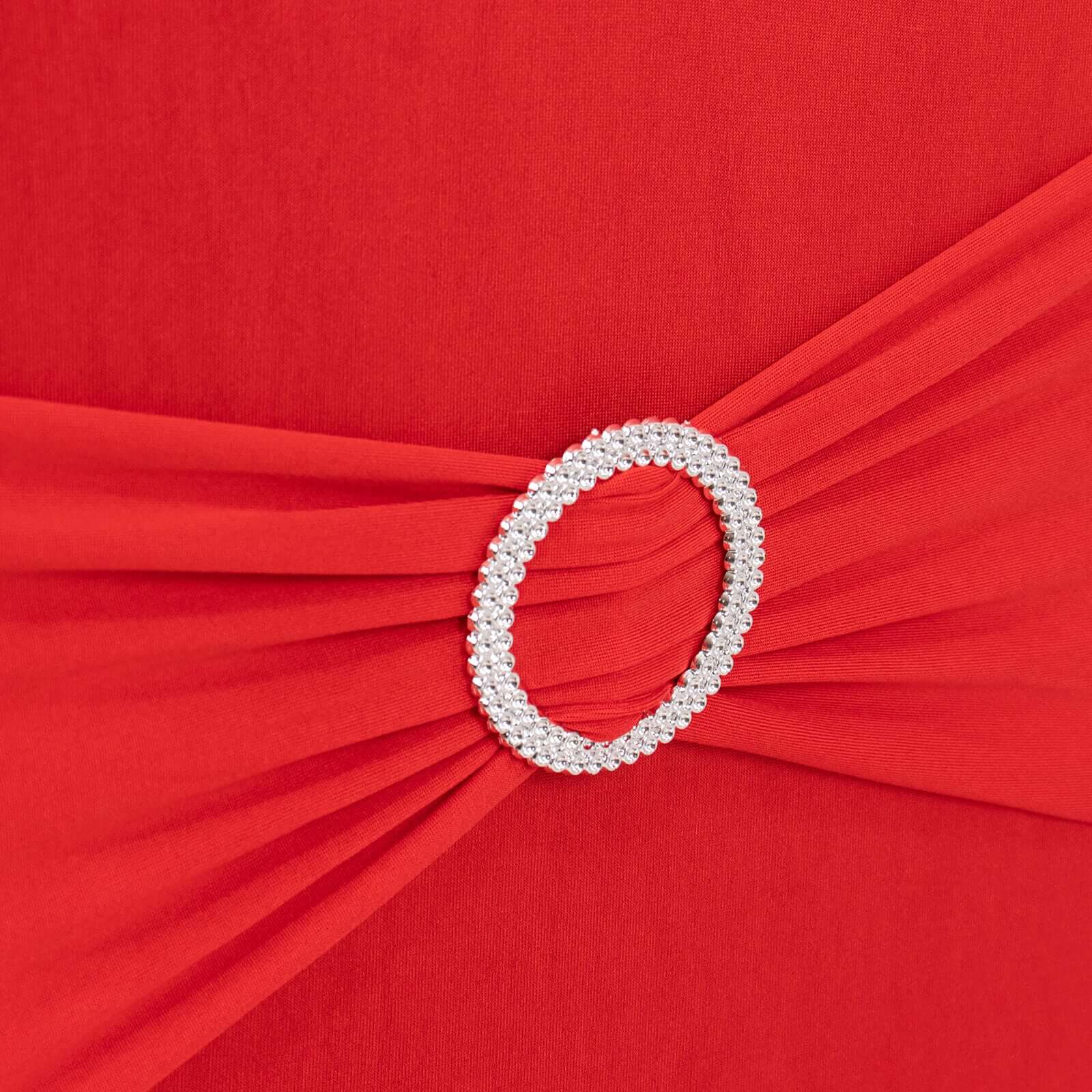 Spandex Chair Cover with Silver Rhinestone Buckled Sash Band Red - Stretch Fitted Slipcover