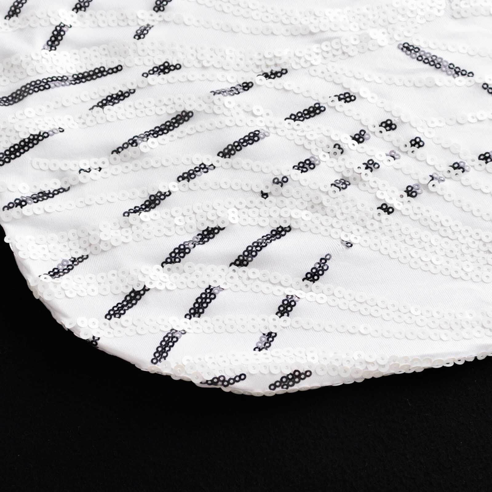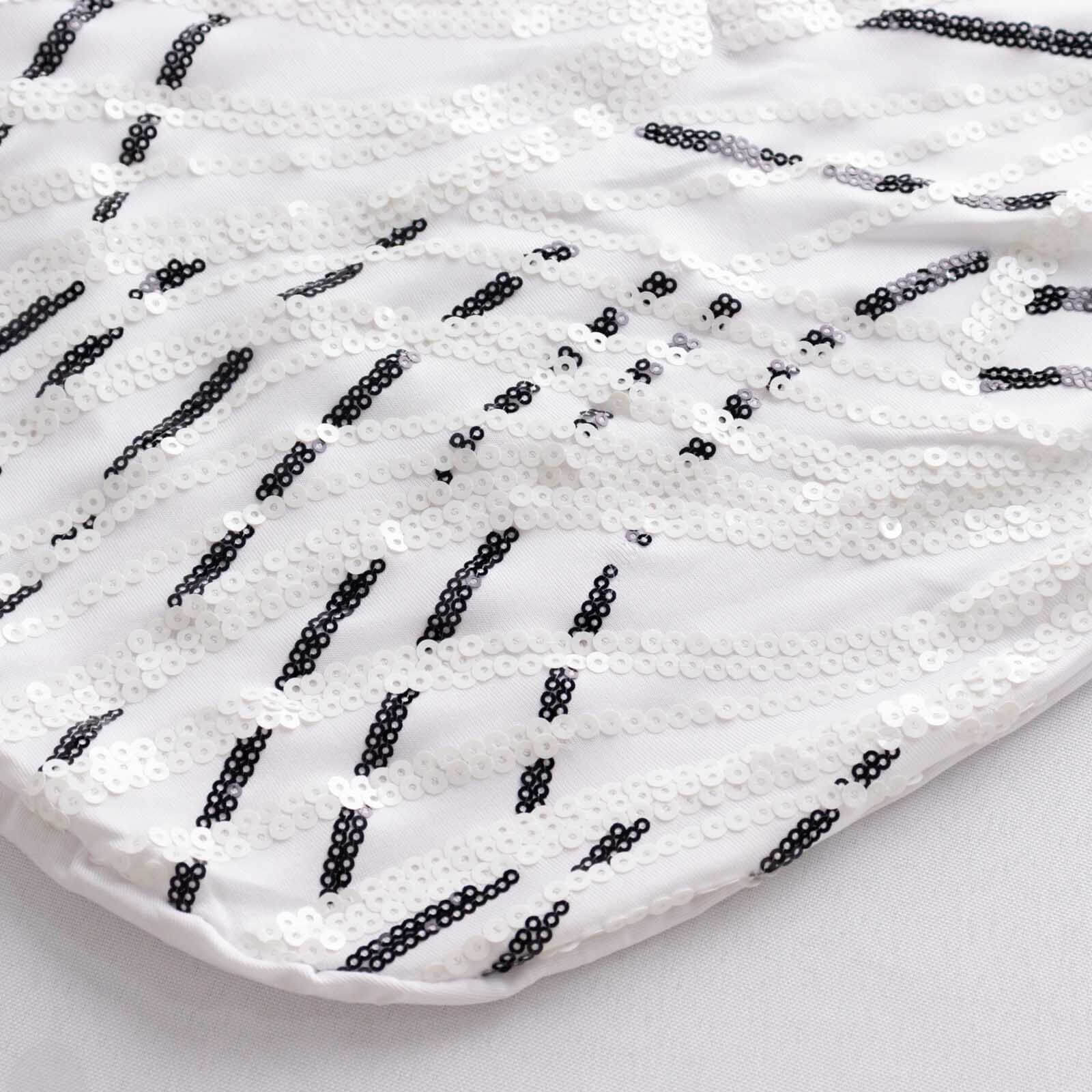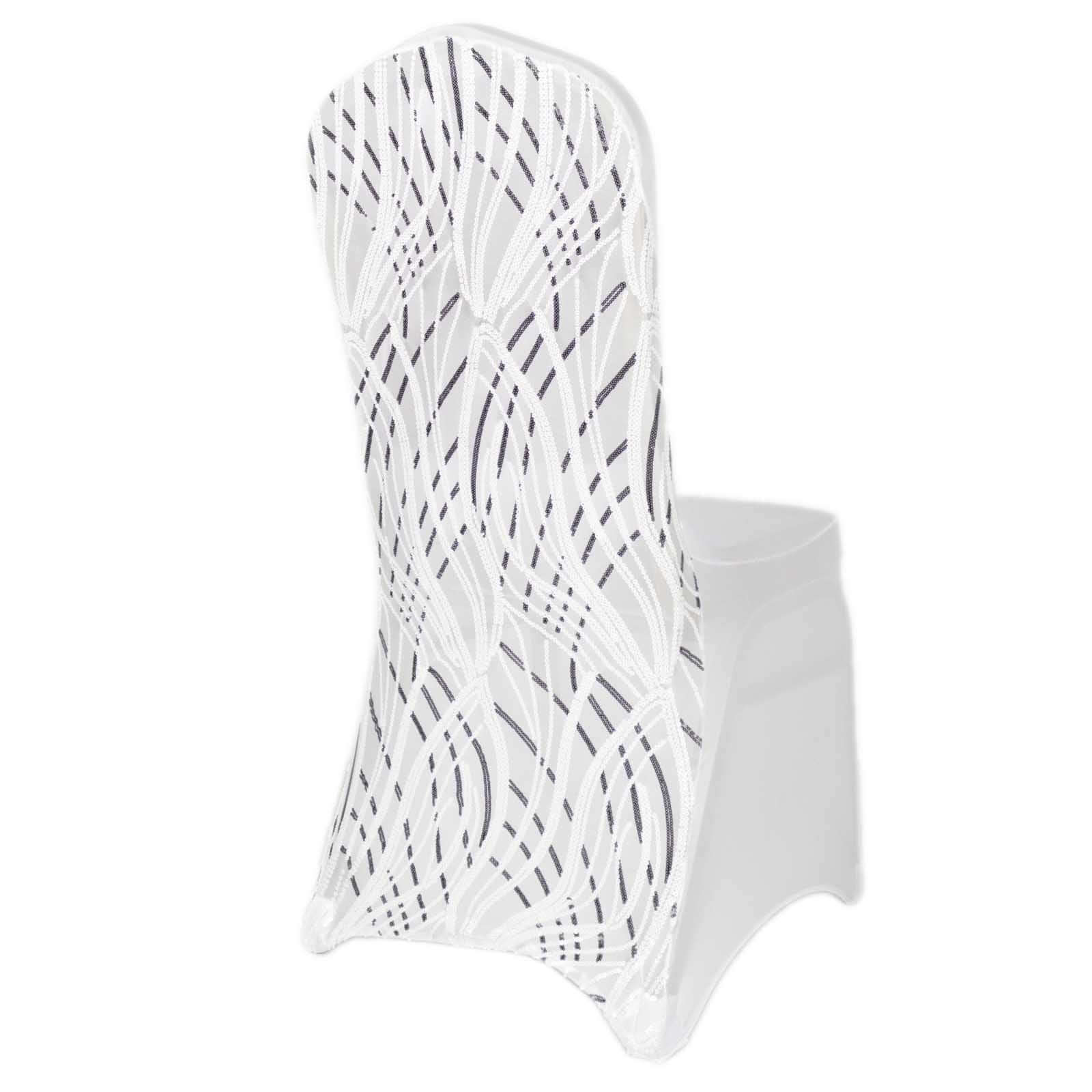 Spandex Chair Cover with Wave Embroidered Sequins for Banquet Chairs White/Black - Luxe Glittering Stretch Fitted Slipcover