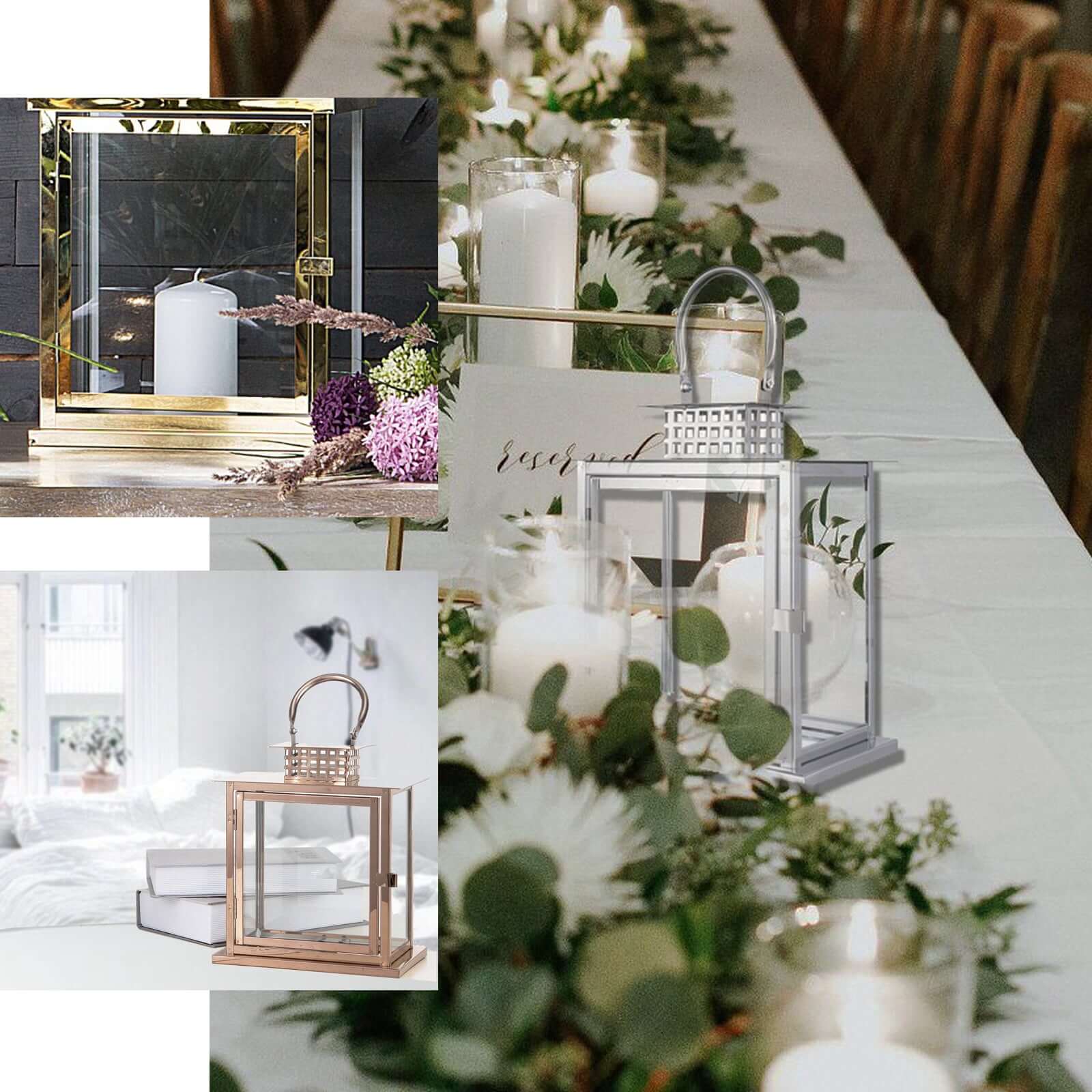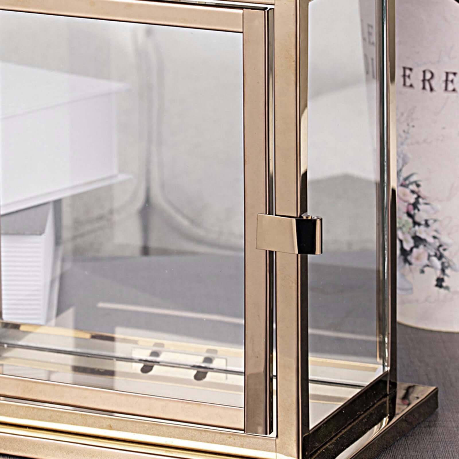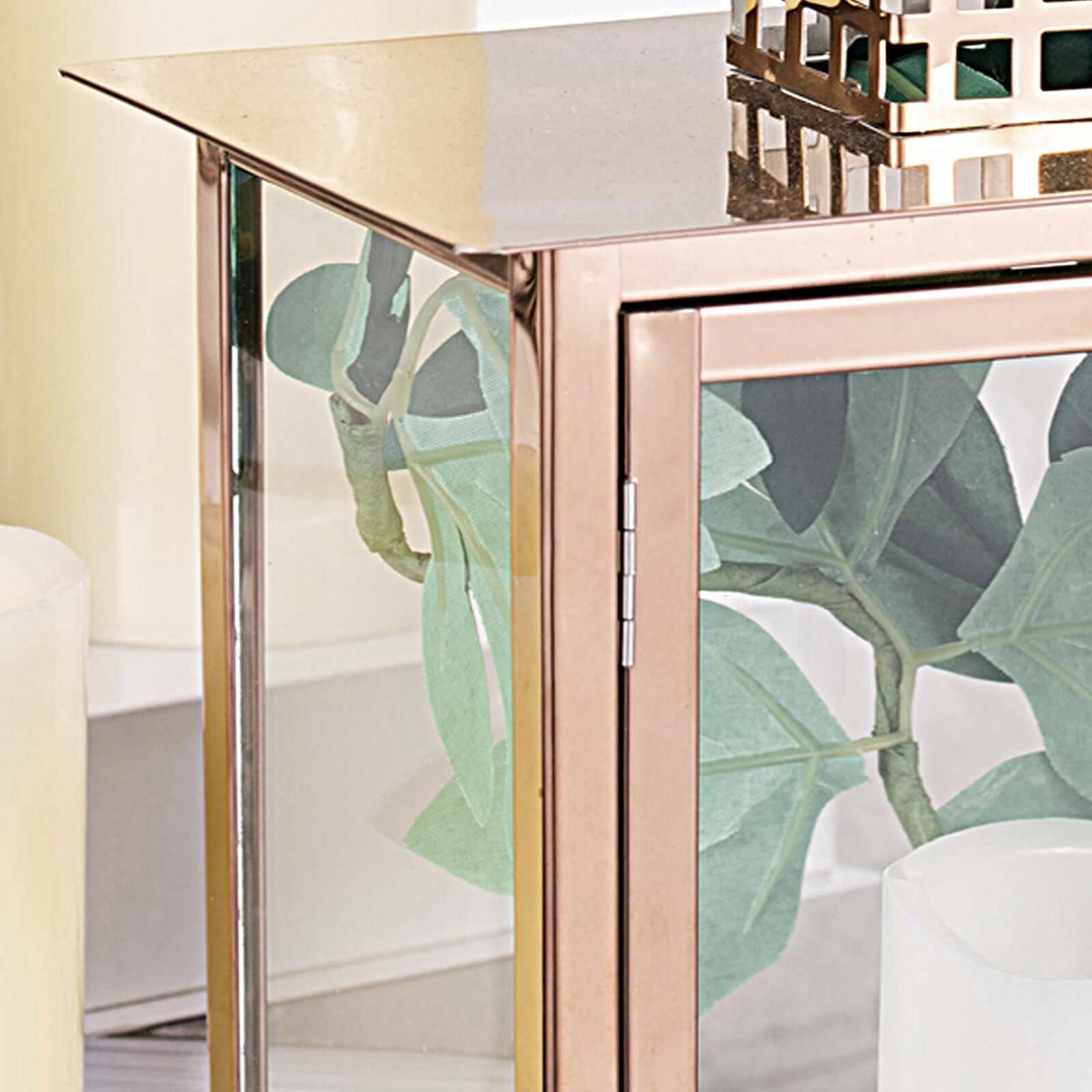Stainless Steel Candle Lantern Cage Top Design Rose Gold - Outdoor Metal Patio Lantern Centerpiece 10"