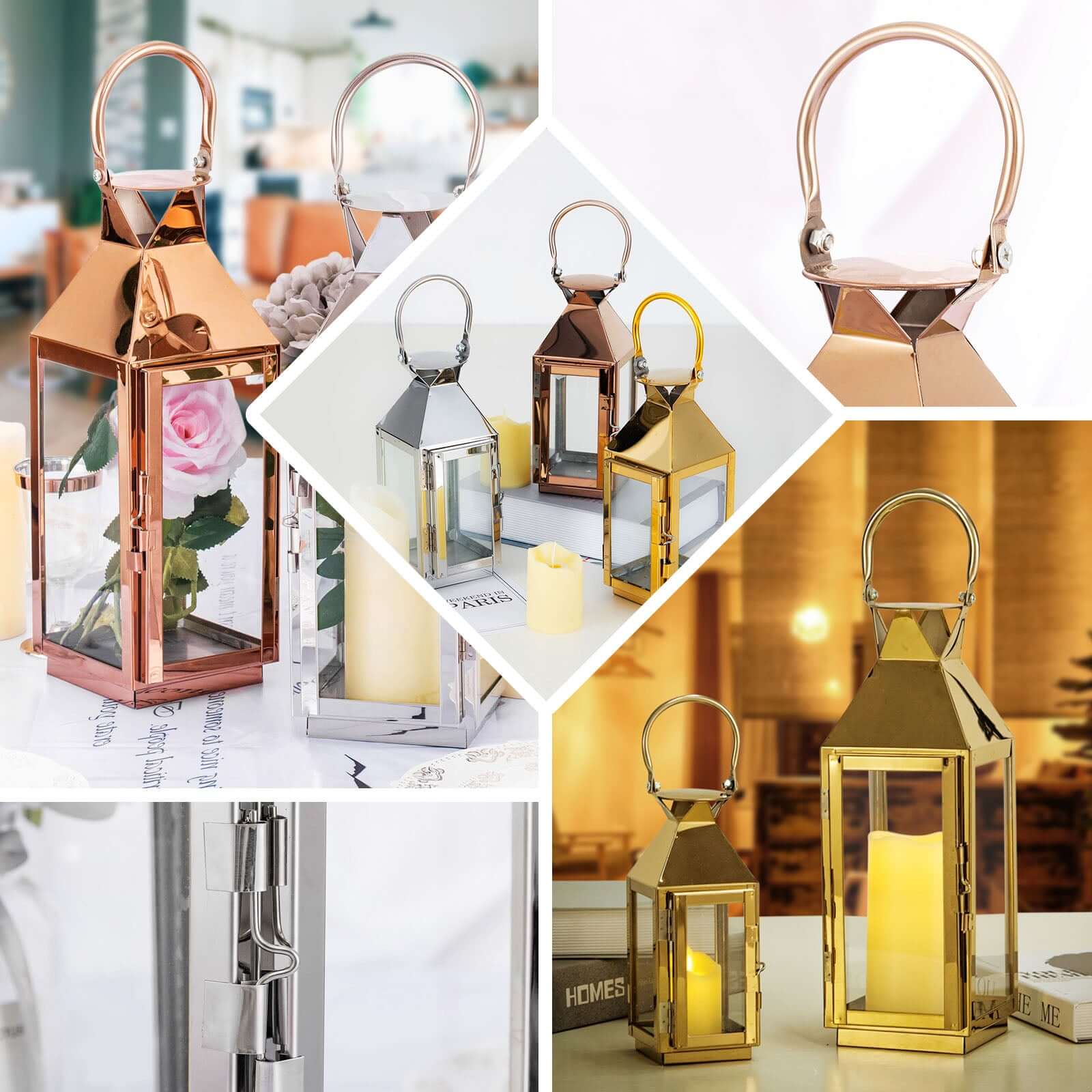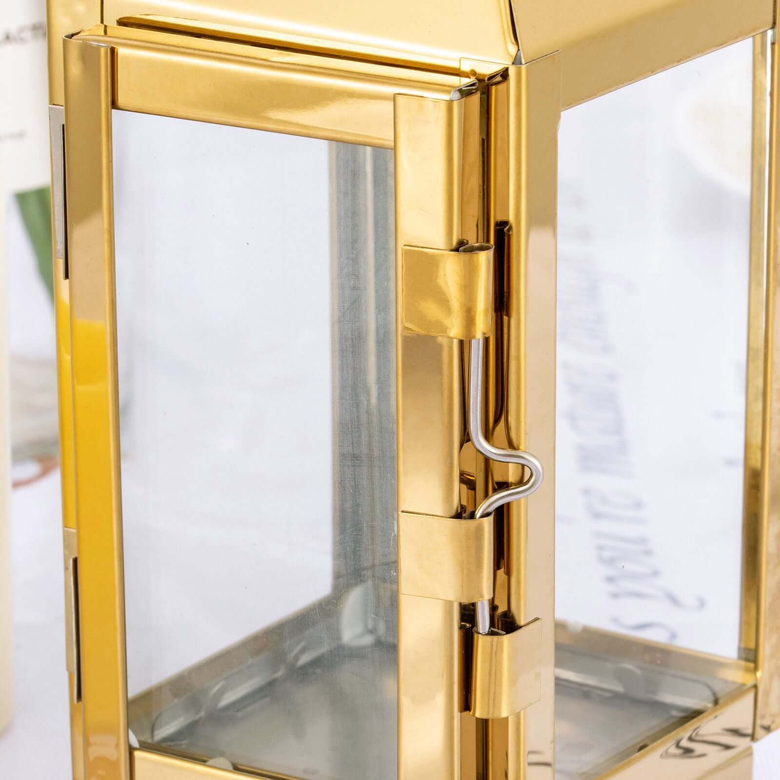 Stainless Steel Candle Lantern Crown Top Design Gold - Outdoor Metal Patio Lantern Centerpiece 8"