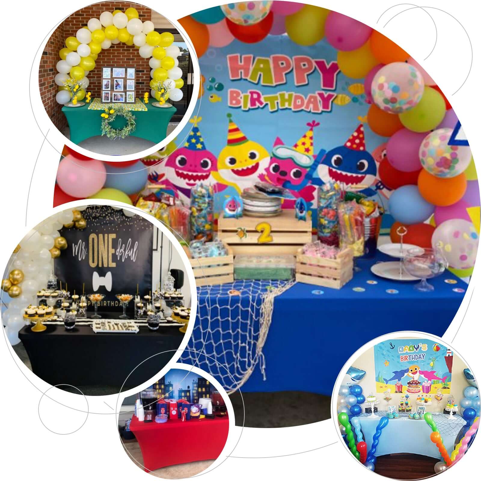 - For Tablecloths only, Decorations not included.