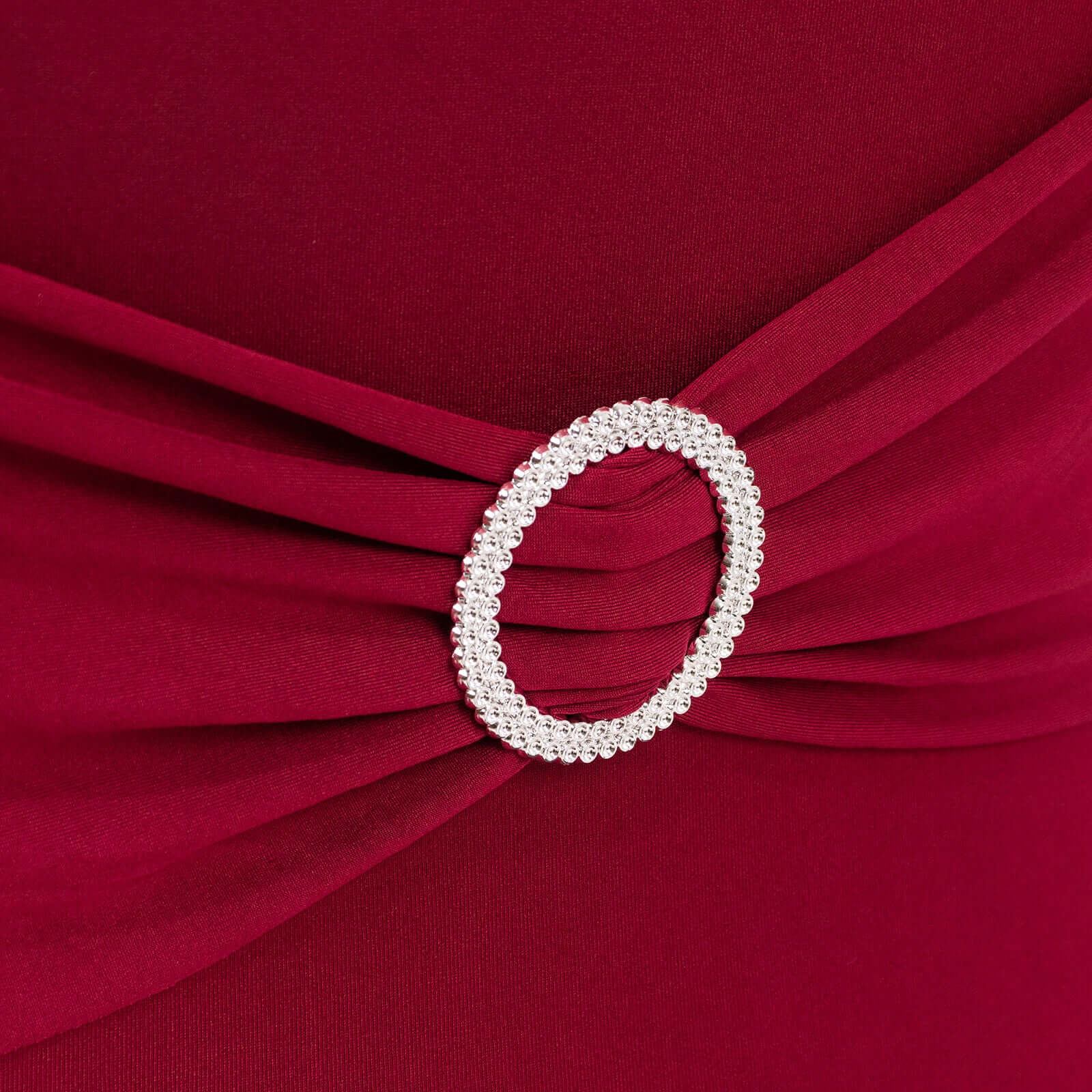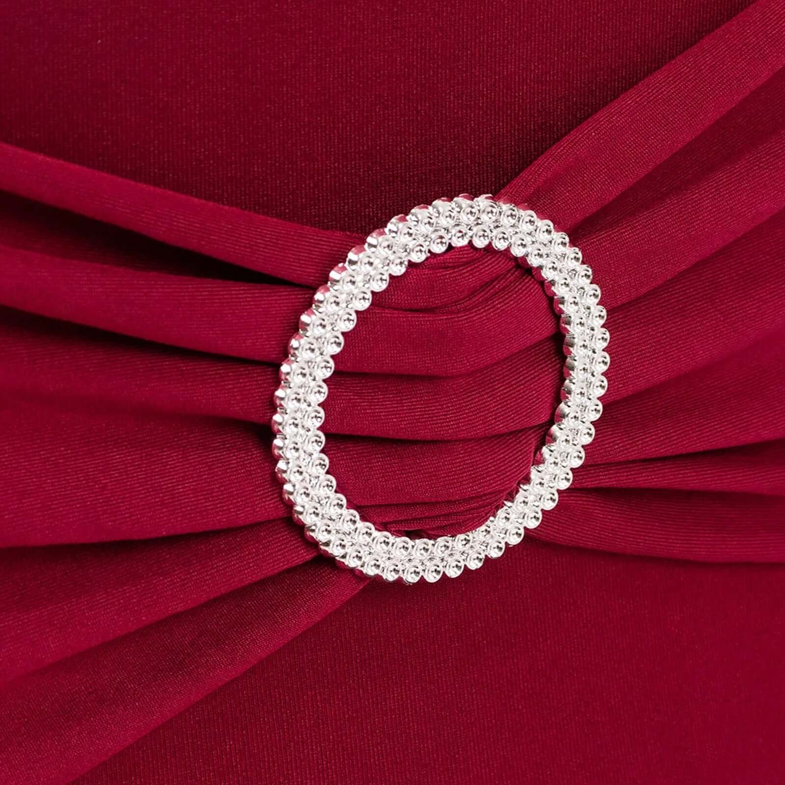 Stretch Spandex Chair Cover Burgundy for Folding Chairs - Secure Fit Slipcover with Silver Rhinestone Buckled Sash Band