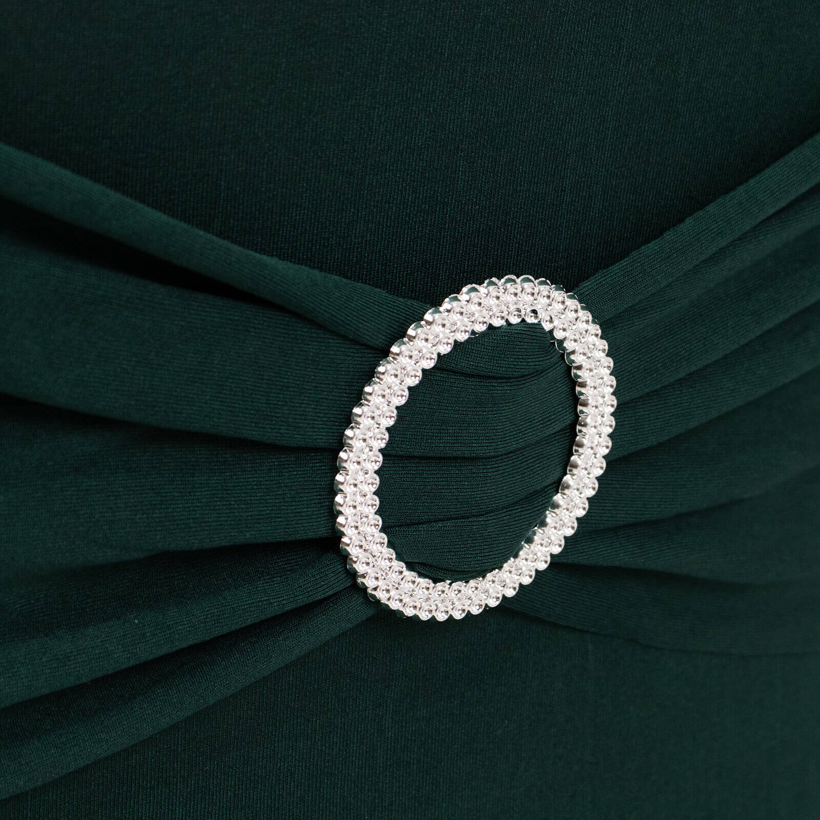 Stretch Spandex Chair Cover Hunter Emerald Green for Folding Chairs - Secure Fit Slipcover with Silver Rhinestone Buckled Sash Band