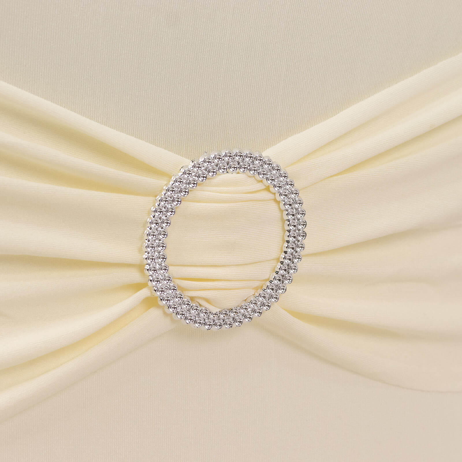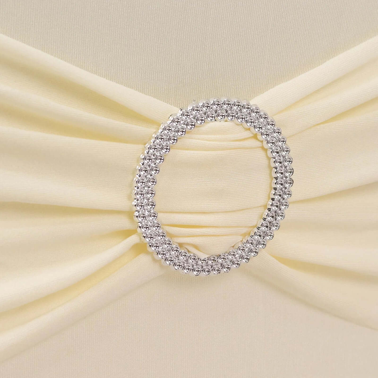 Stretch Spandex Chair Cover Ivory for Folding Chairs - Secure Fit Slipcover with Silver Rhinestone Buckled Sash Band