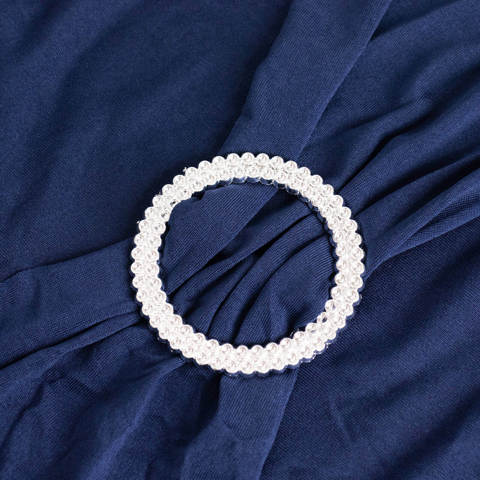 Stretch Spandex Chair Cover Navy Blue for Folding Chairs - Secure Fit Slipcover with Silver Rhinestone Buckled Sash Band