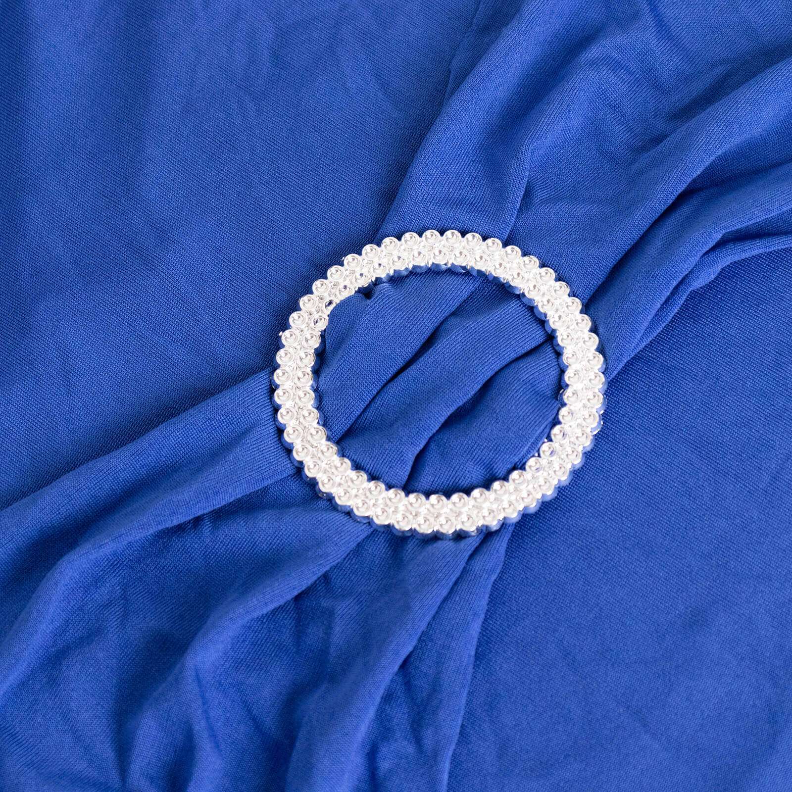 Stretch Spandex Chair Cover Royal Blue for Folding Chairs - Secure Fit Slipcover with Silver Rhinestone Buckled Sash Band
