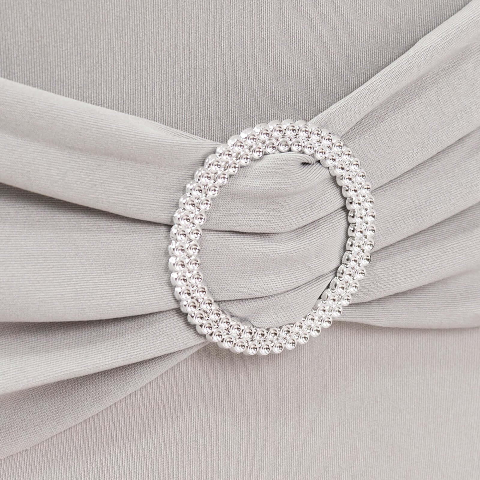 Stretch Spandex Chair Cover Silver for Folding Chairs - Secure Fit Slipcover with Silver Rhinestone Buckled Sash Band