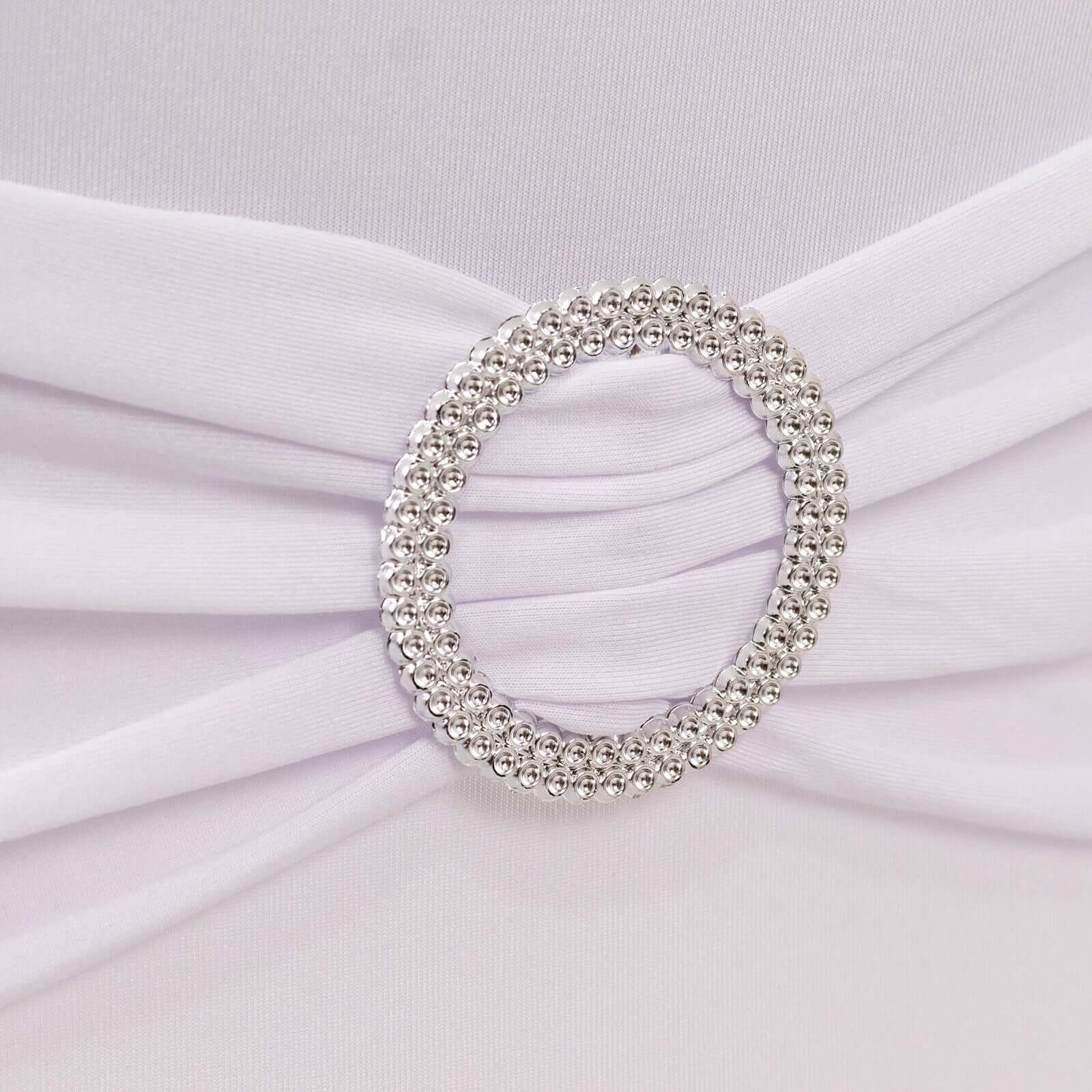 Stretch Spandex Chair Cover White for Folding Chairs - Enhanced Style & Secure Fit Slipcover with Stunning Silver Rhinestone Buckled Sash Band