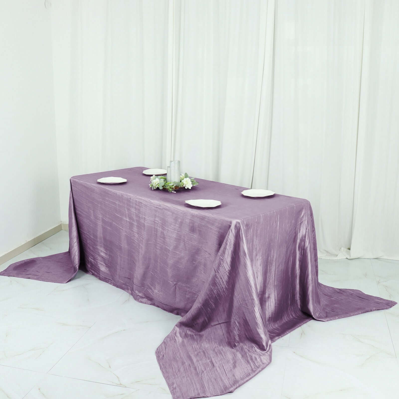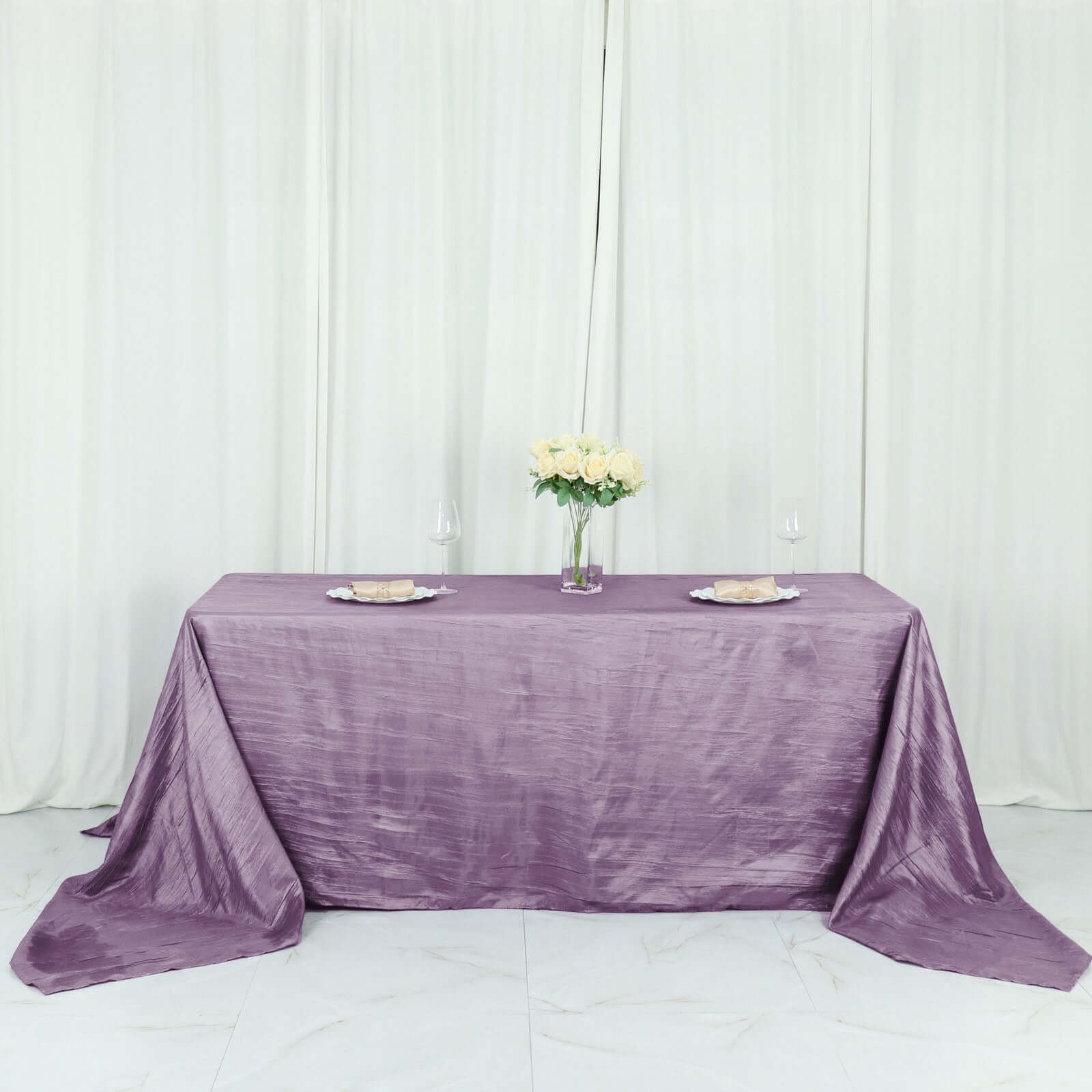 Taffeta 90"x132" Rectangle Tablecloth Violet Amethyst - Seamless Accordion Crinkle Table Cover