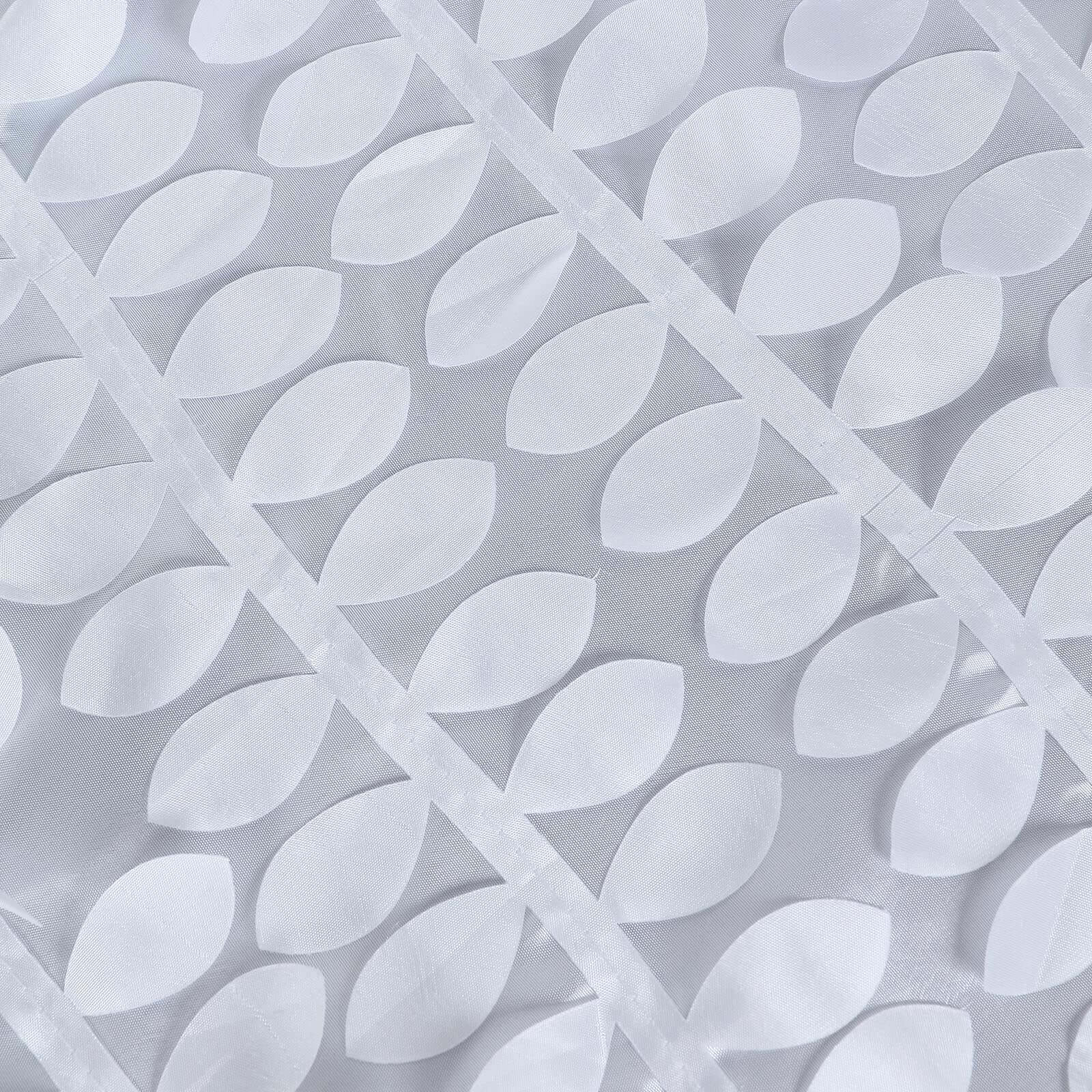 Taffeta 90"x132" Rectangle Tablecloth White | 3D Leaf Petal Design Seamless Table Cover for Stylish Wedding & Event Decor