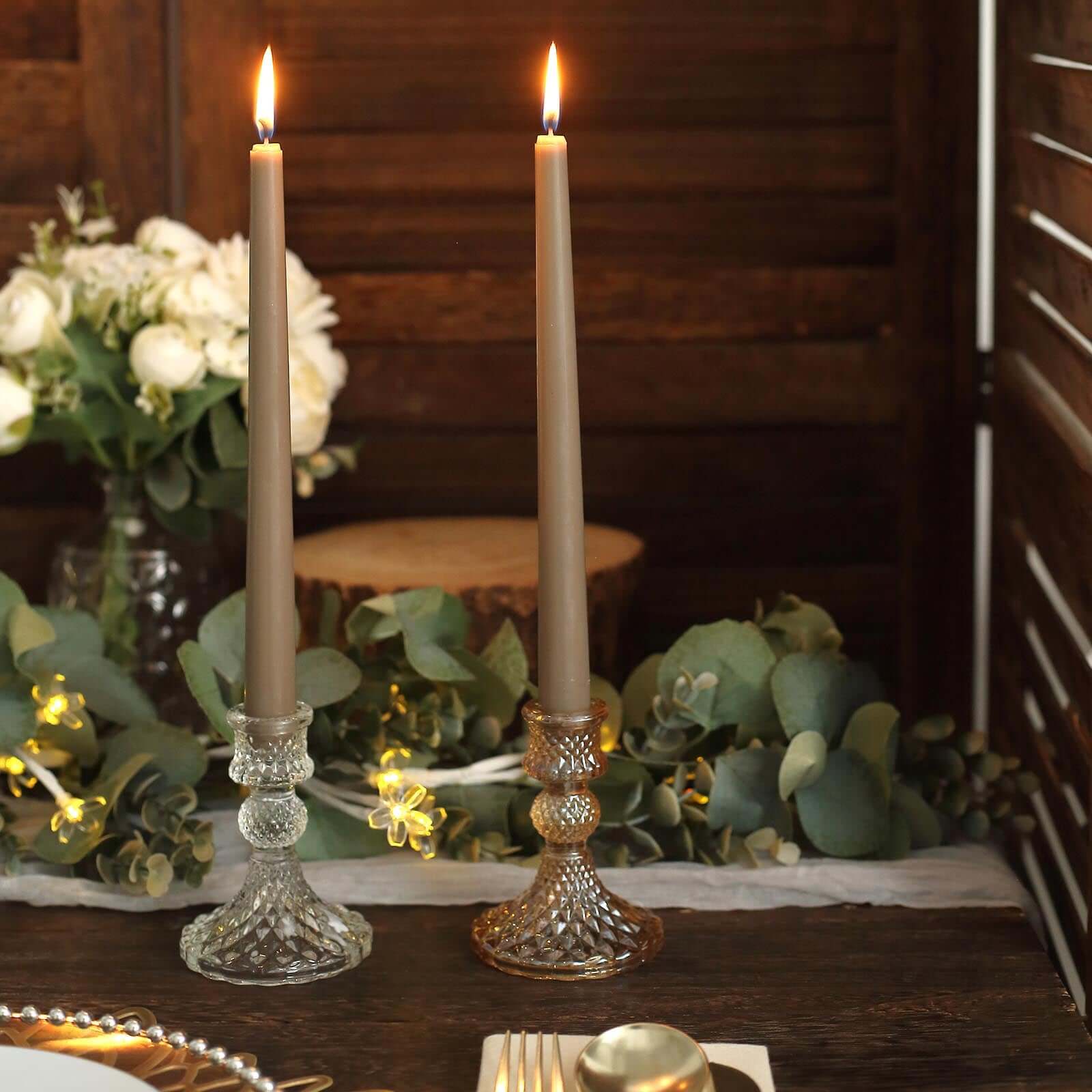 12-Pack Taper Candles Premium Wax Design Taupe - Unscented Candles for Upscale Settings 10"