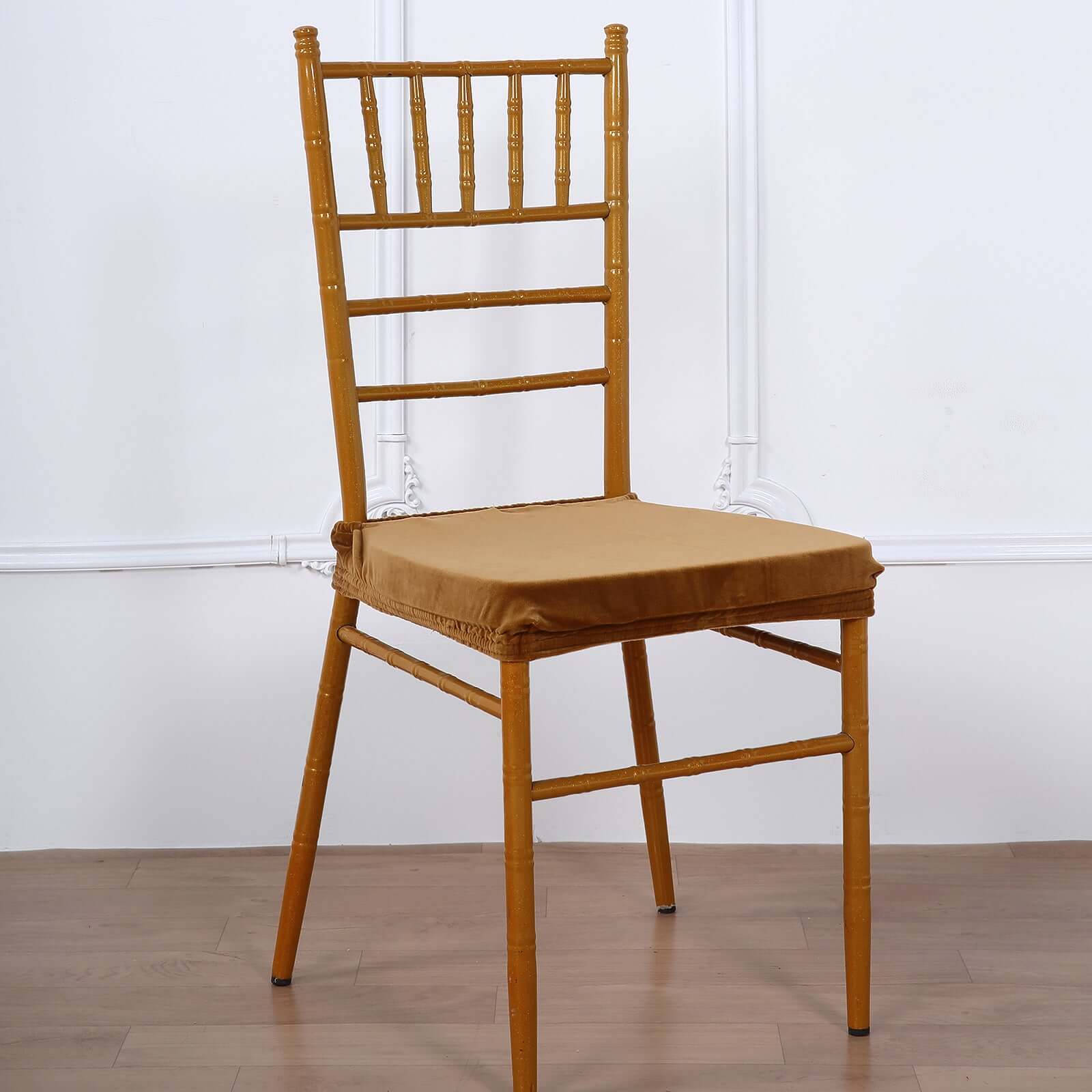 Velvet Chair Cushion Protector Stretch with Tie for Dining Chairs Gold - Durable Cover for Formal Gatherings
