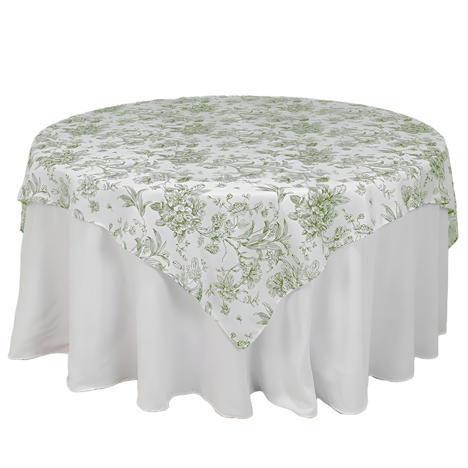 Polyester 70"x70" Table Overlay White - Dusty Sage Green French Toile Pattern for Stylish Events