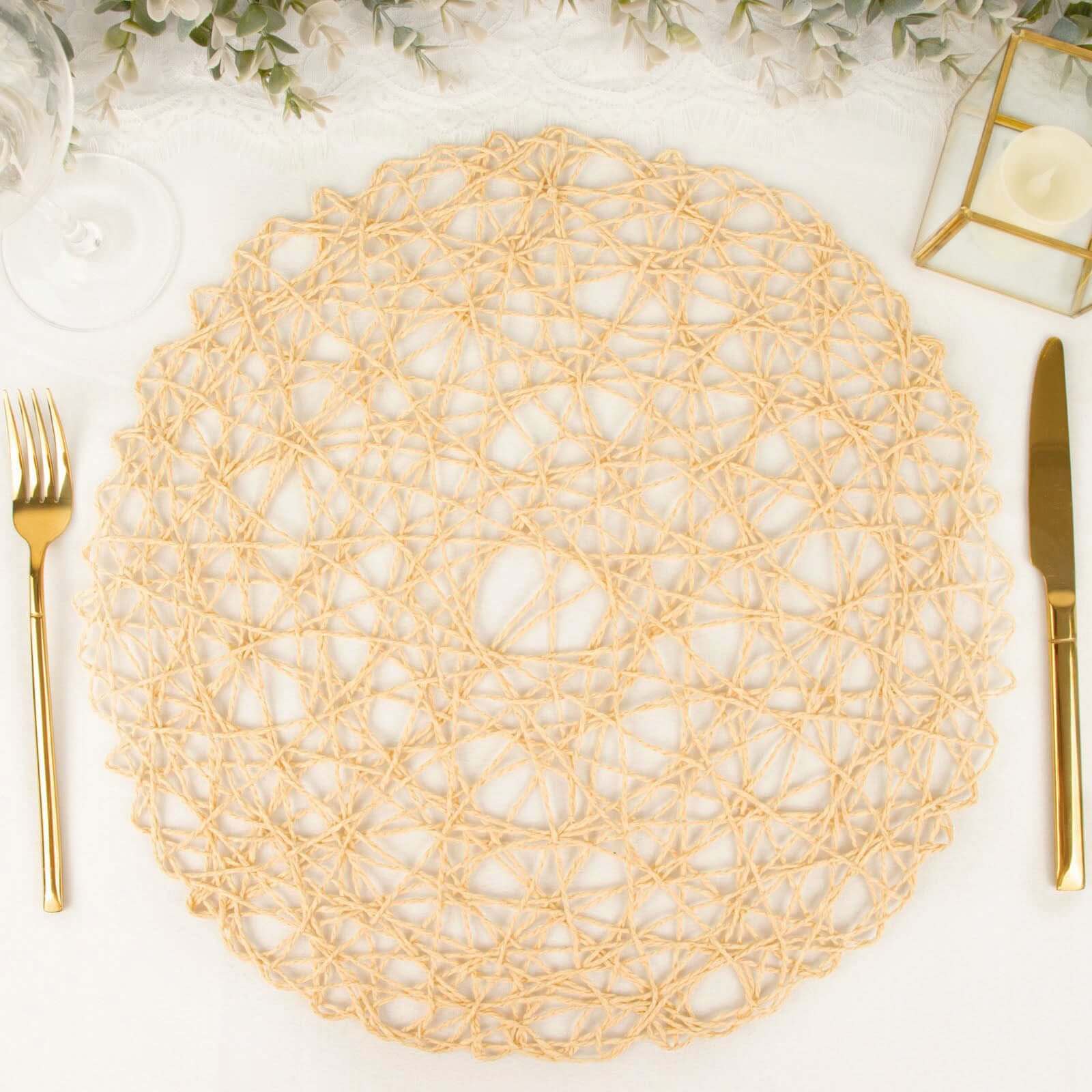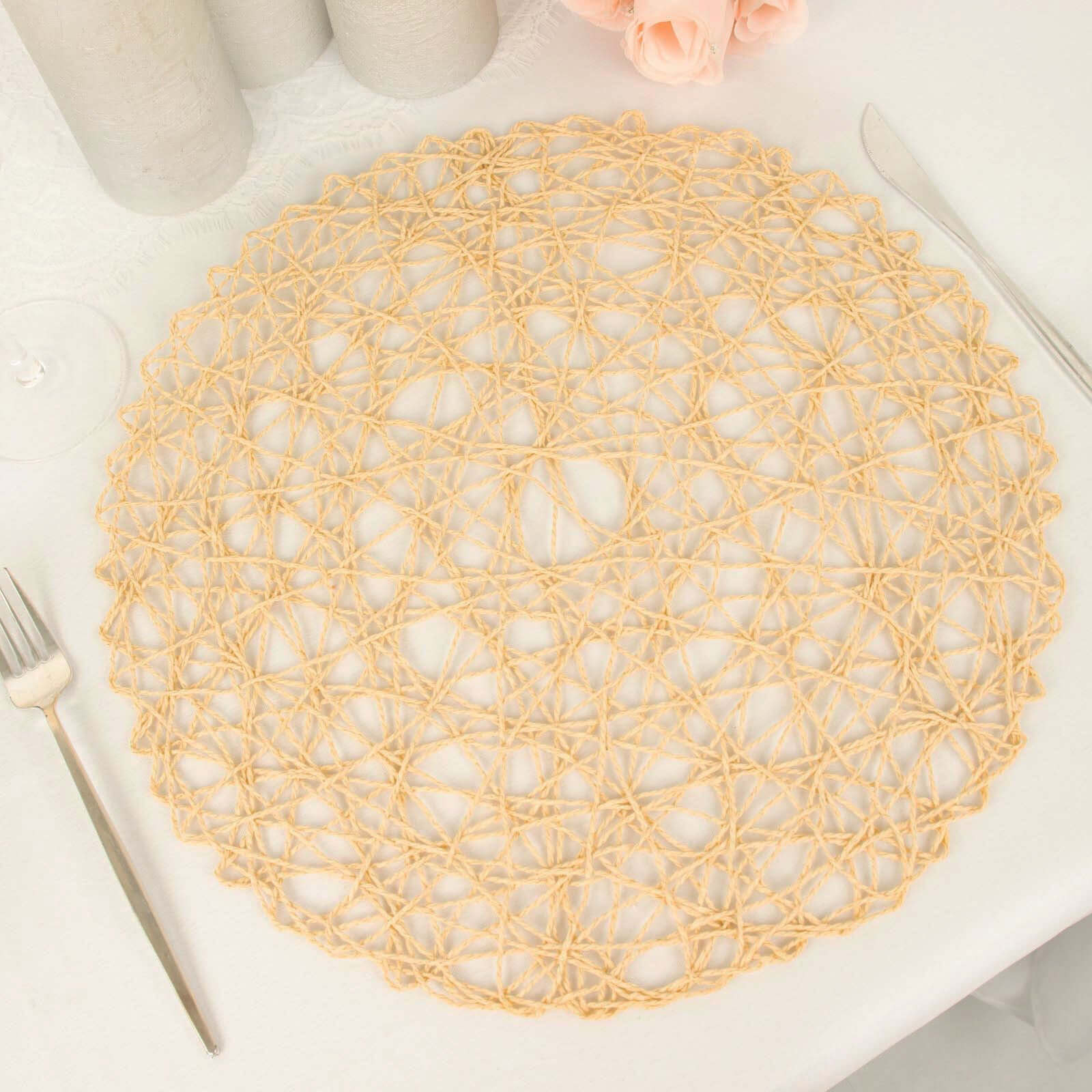 6-Pack Table Placemats Woven Fiber Design Beige Round - Disposable Mats for Dining and Events 15"